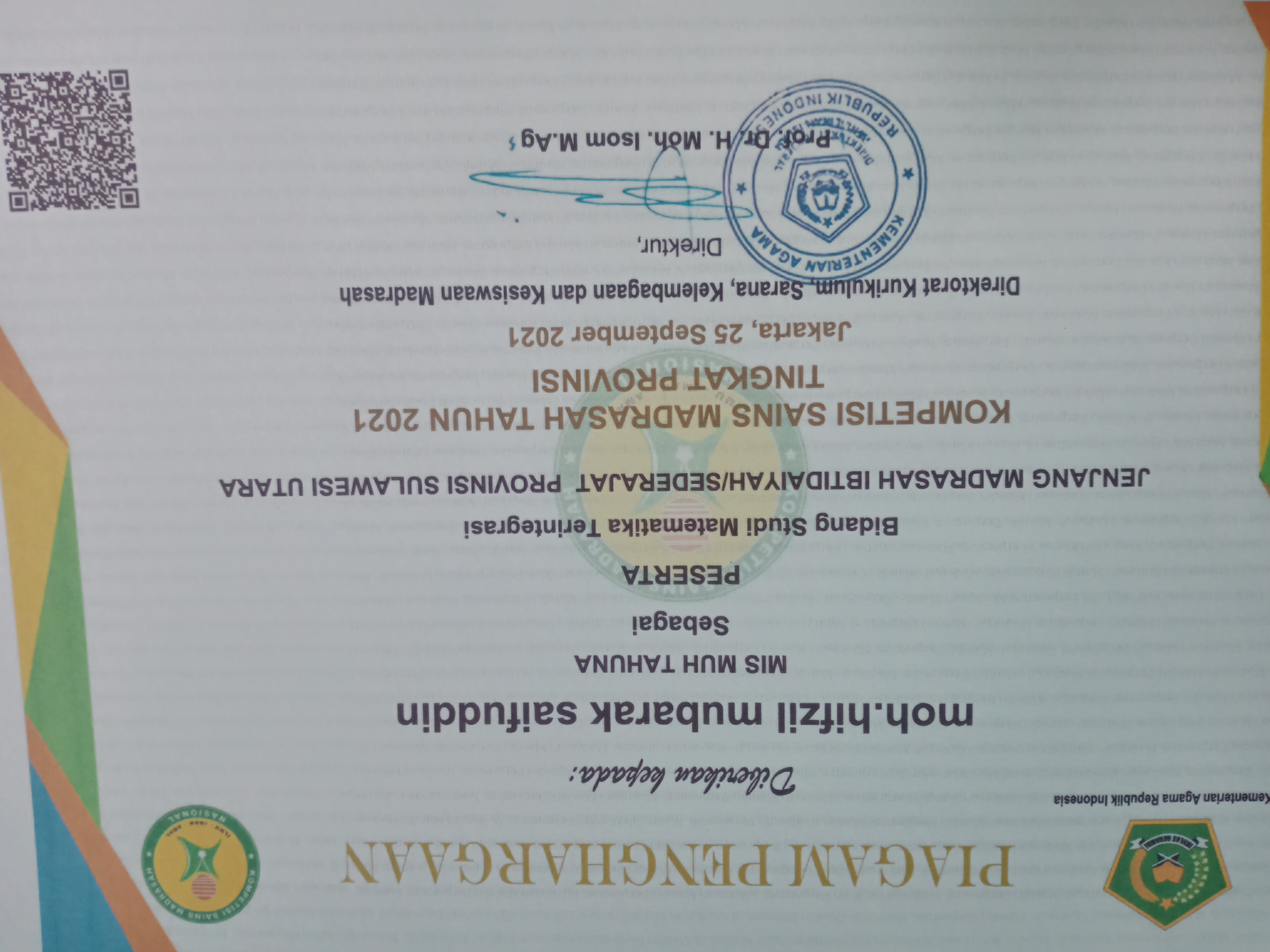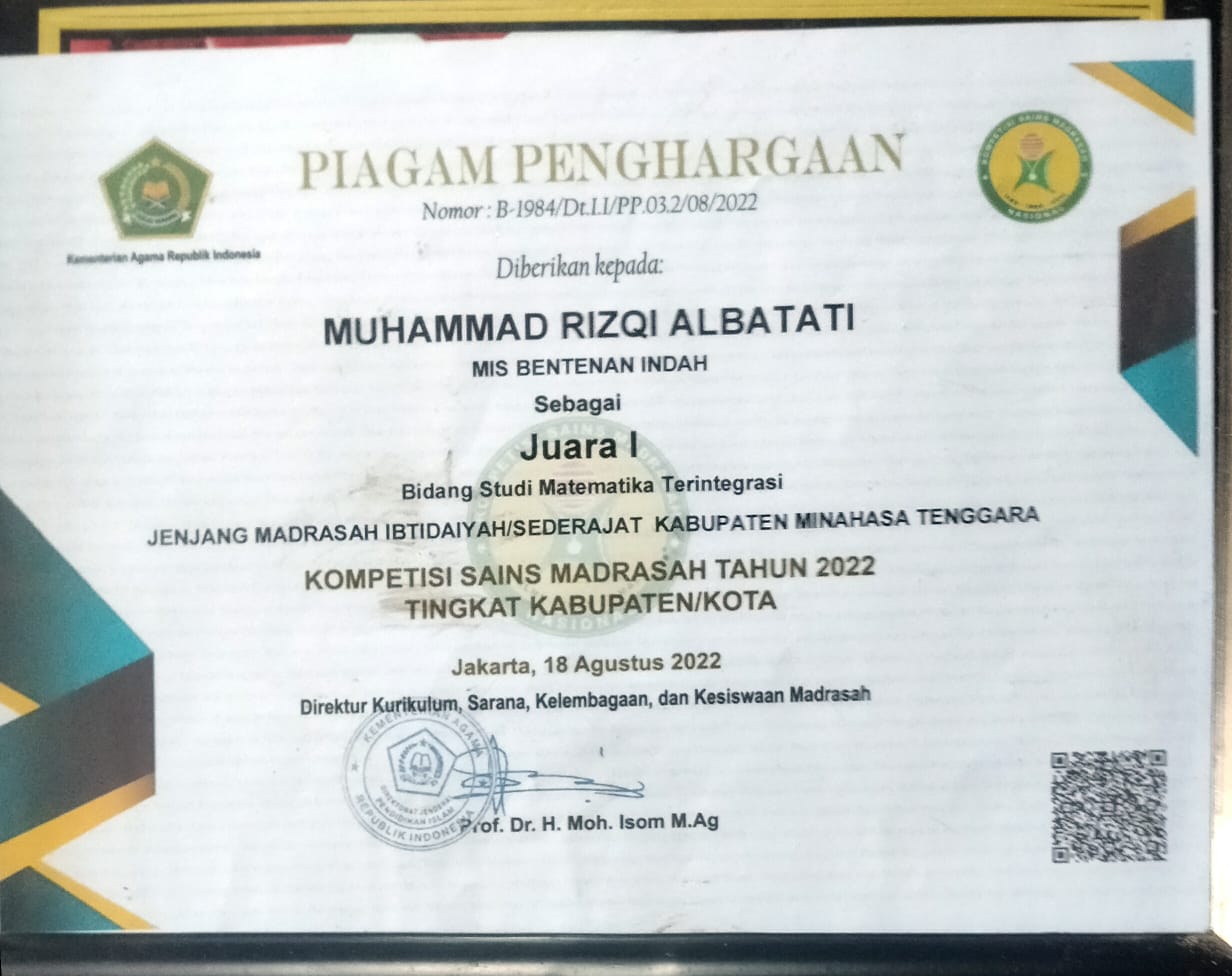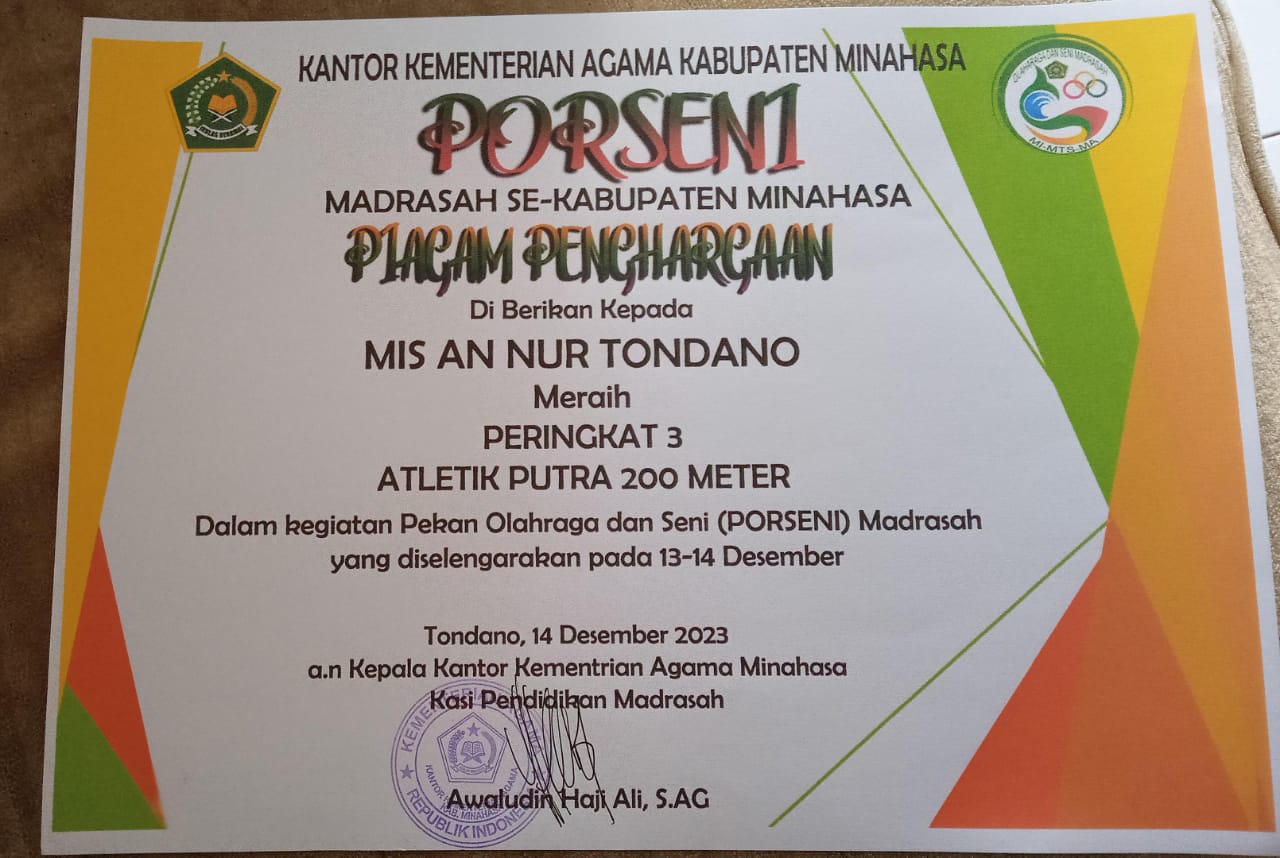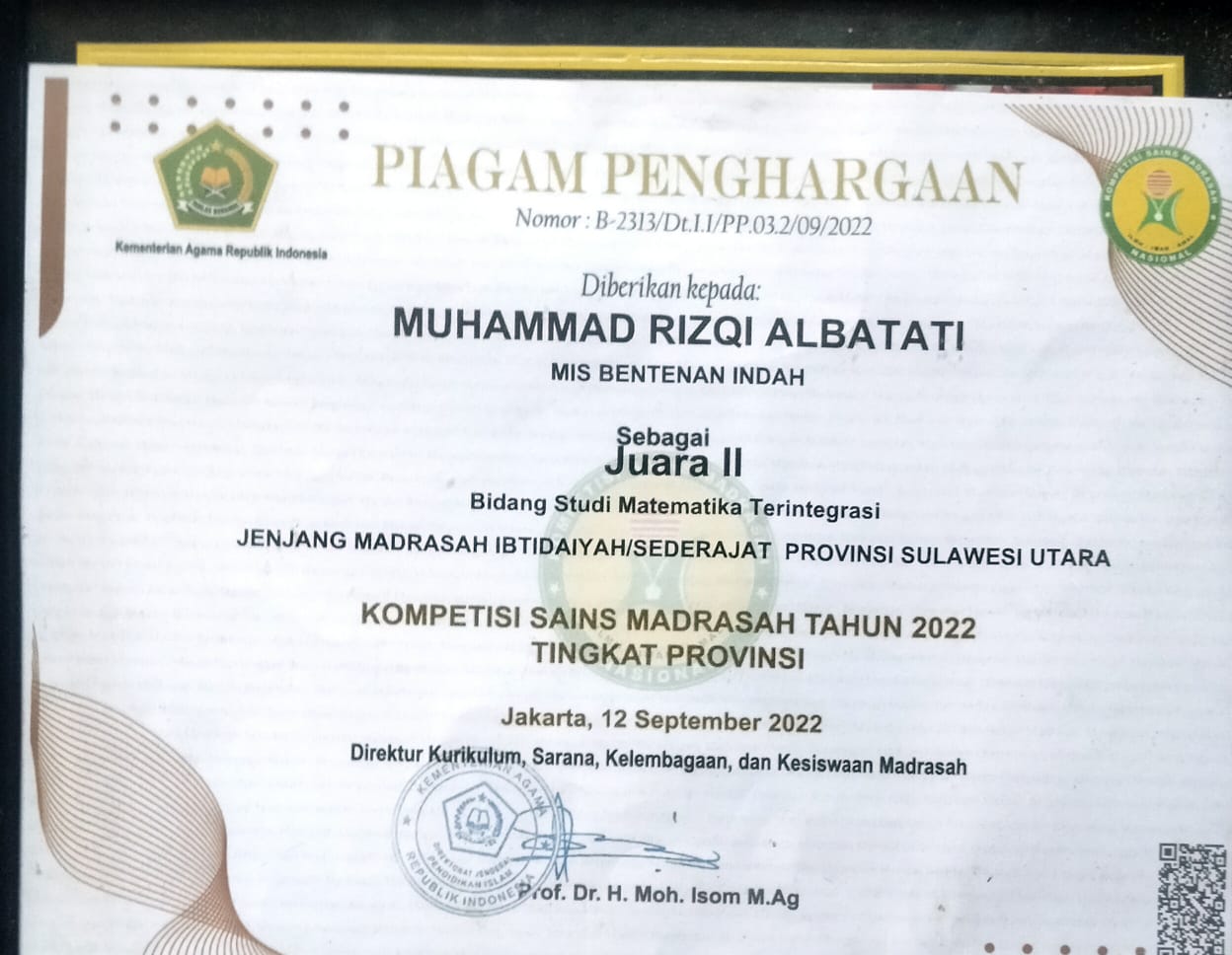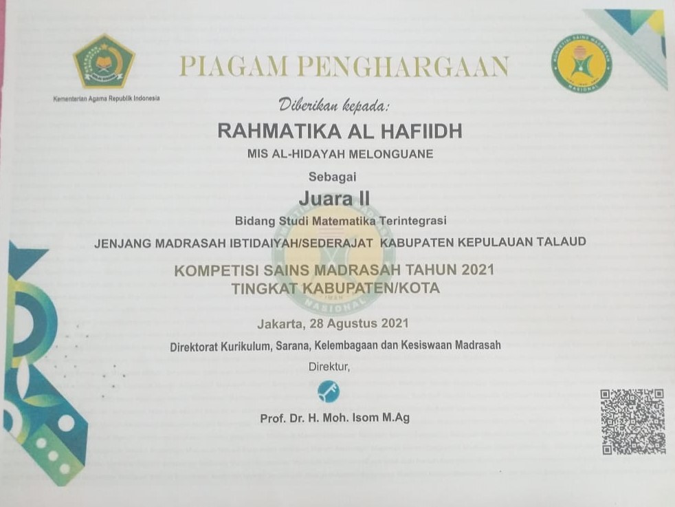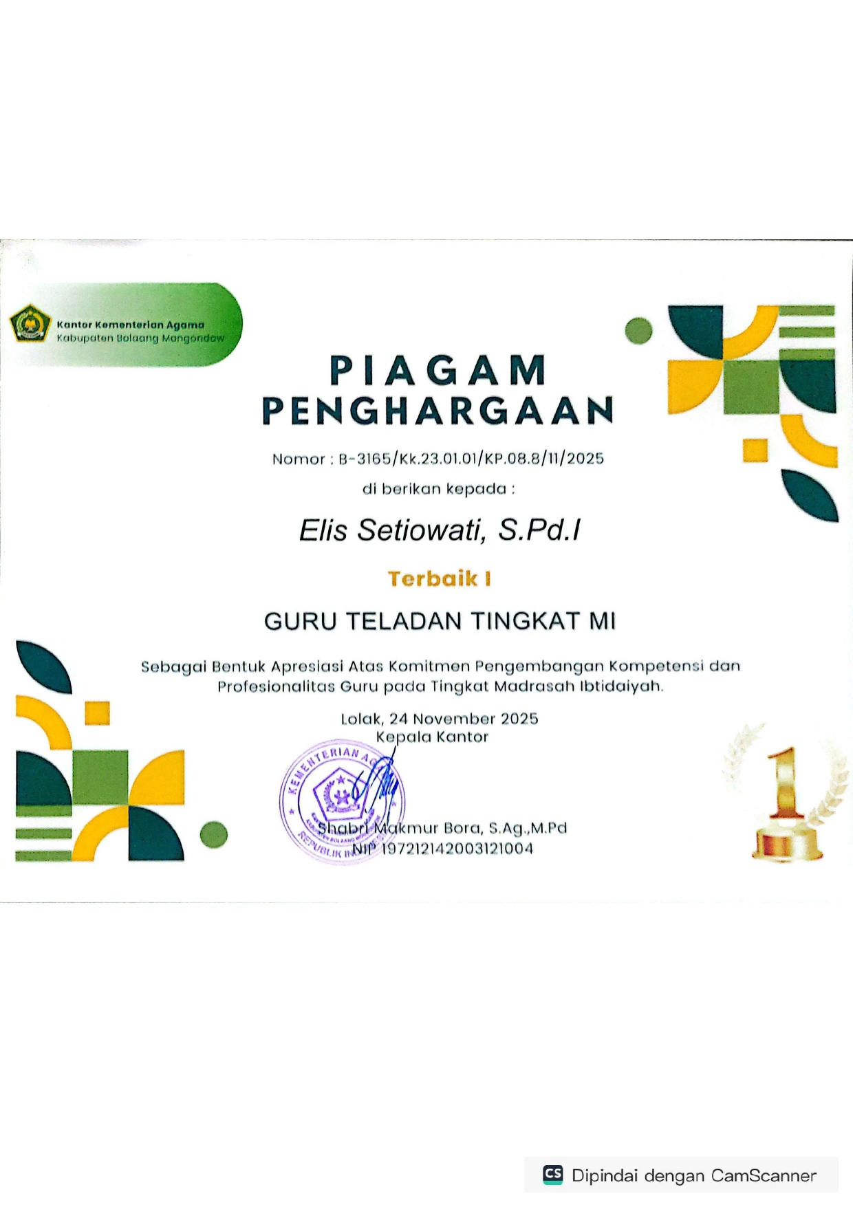 - cabang Kepala Madrasah yang paling Disiplin, Kreatif dan Inovatif dalam menjalankan Tugas