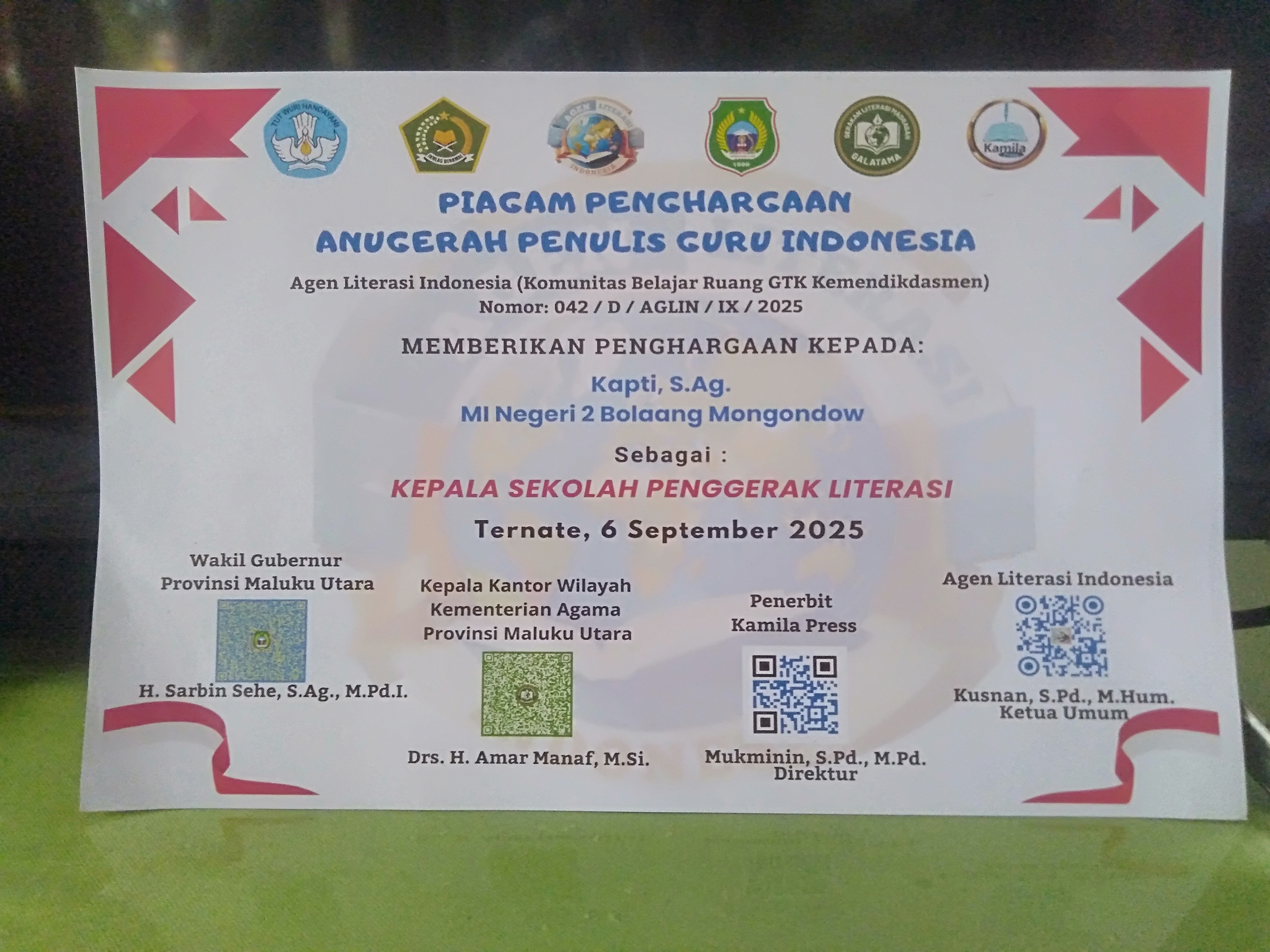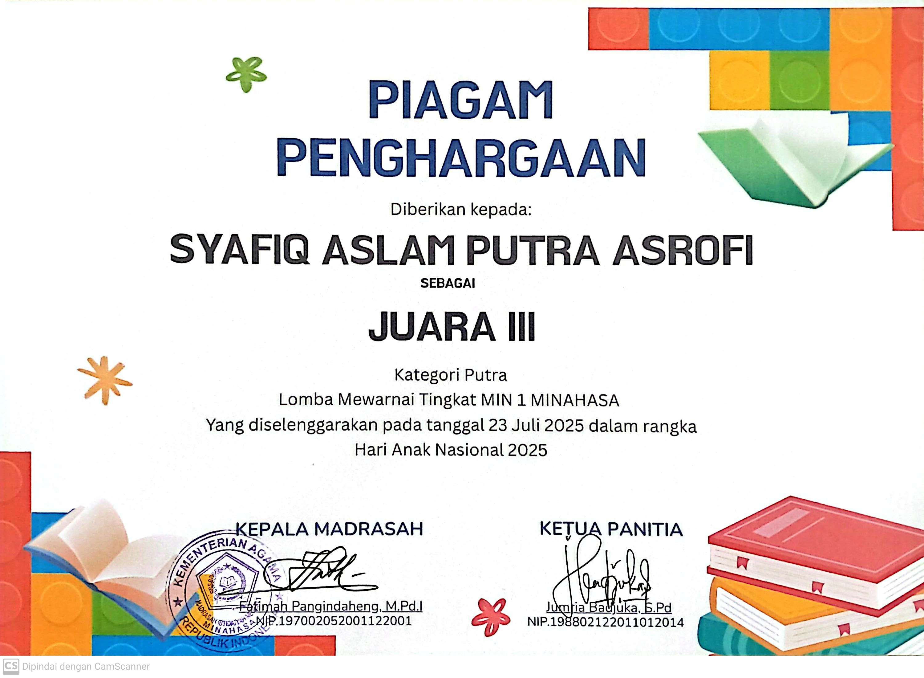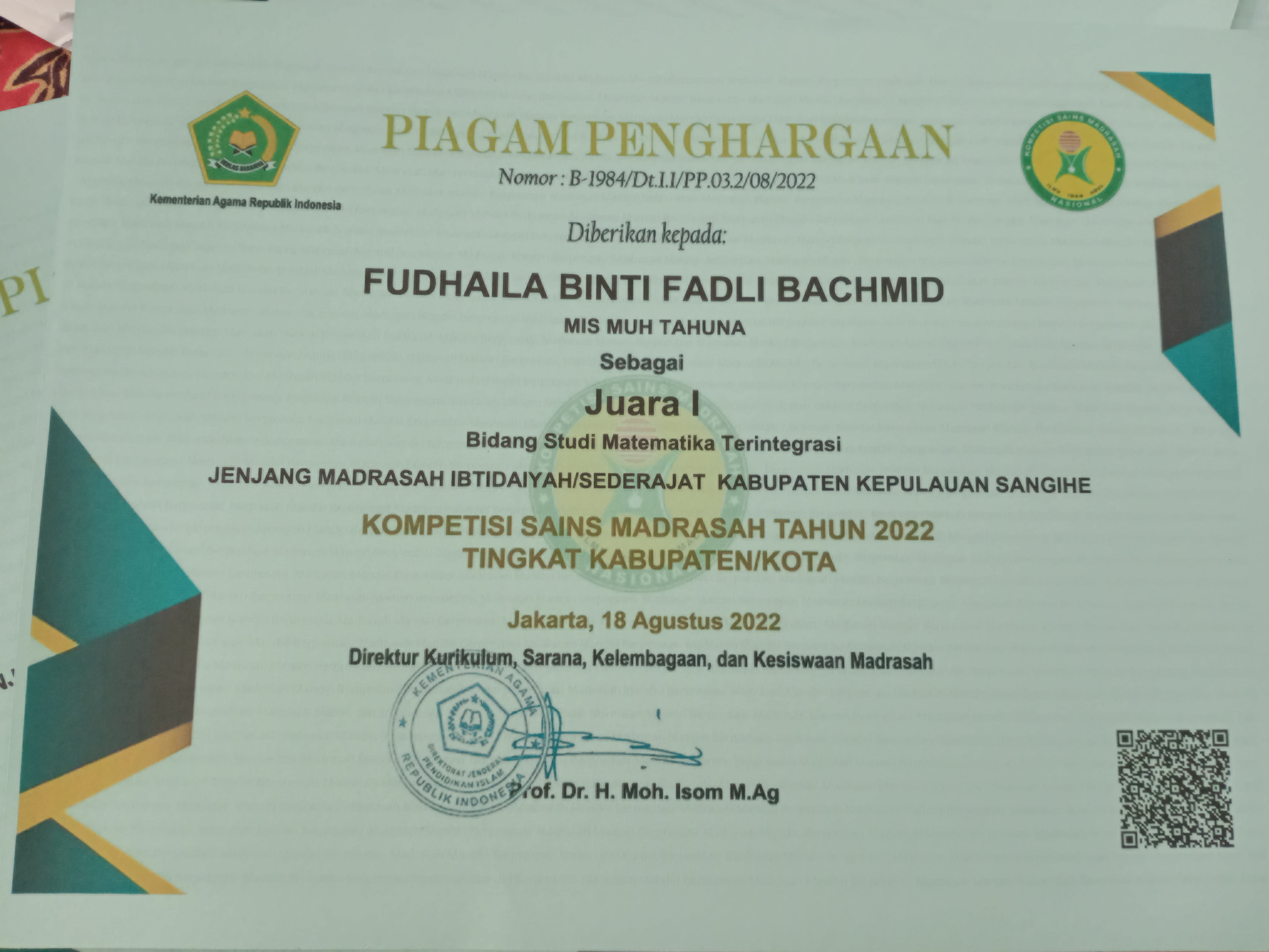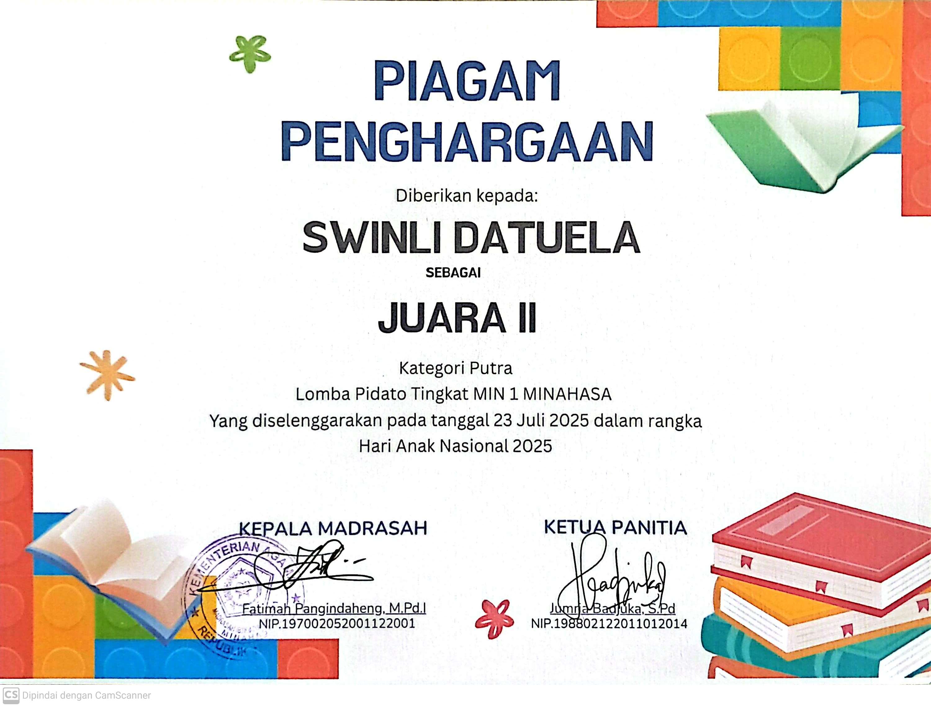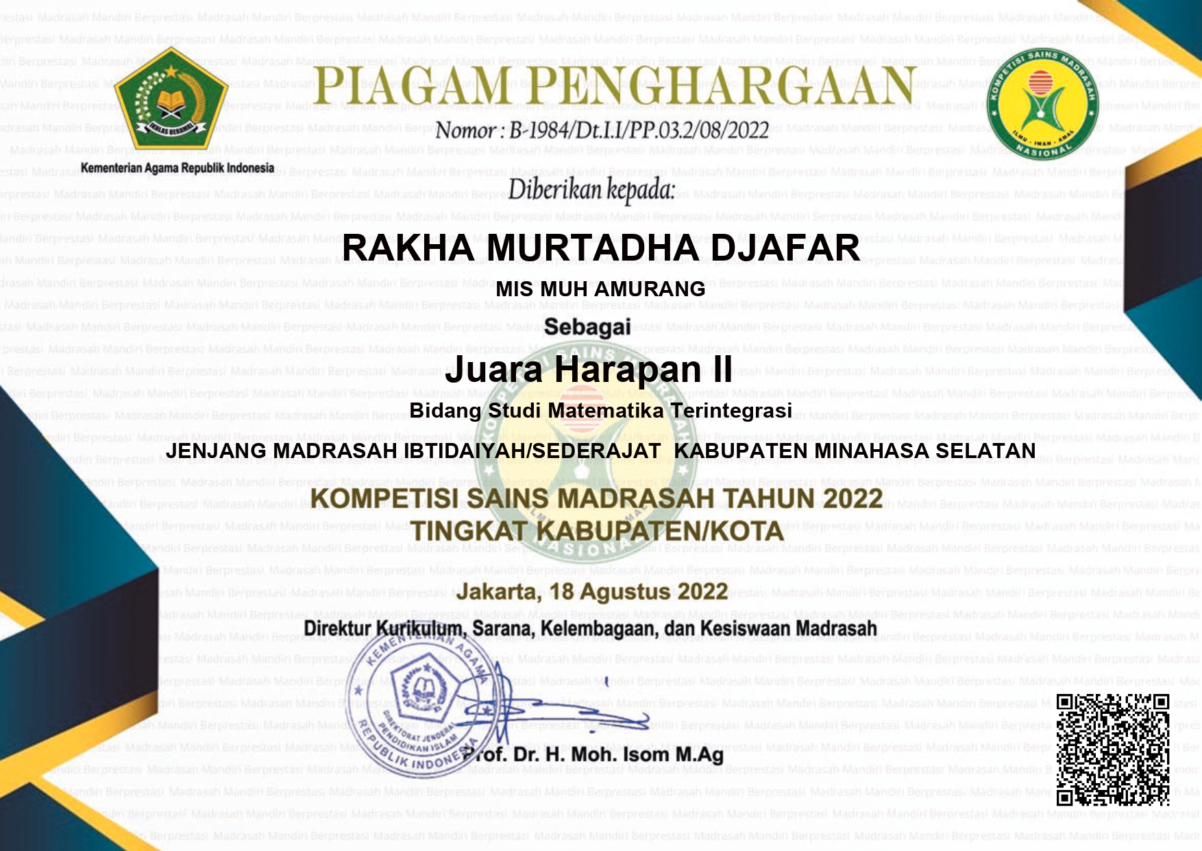 - cabang Kepala Madrasah yang paling Disiplin, Kreatif dan Inovatif dalam menjalankan Tugas