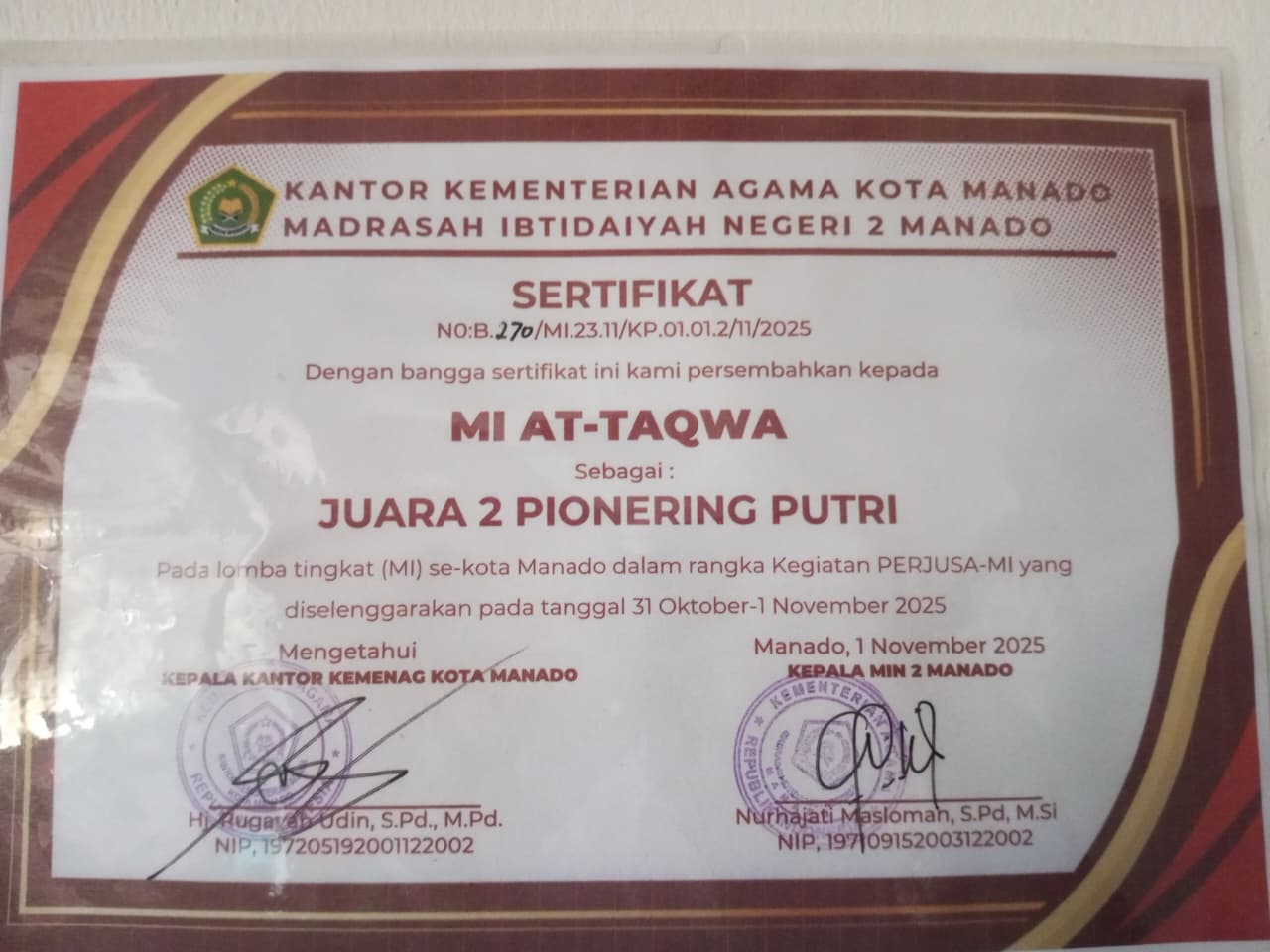 Siswa an. Wafiq Nur Rahmadhania Mantali |