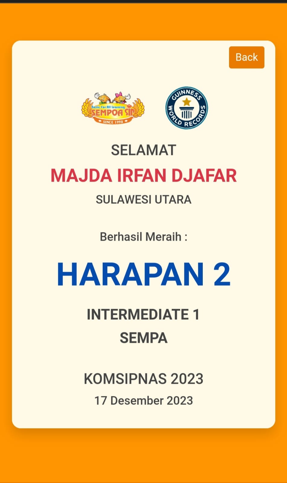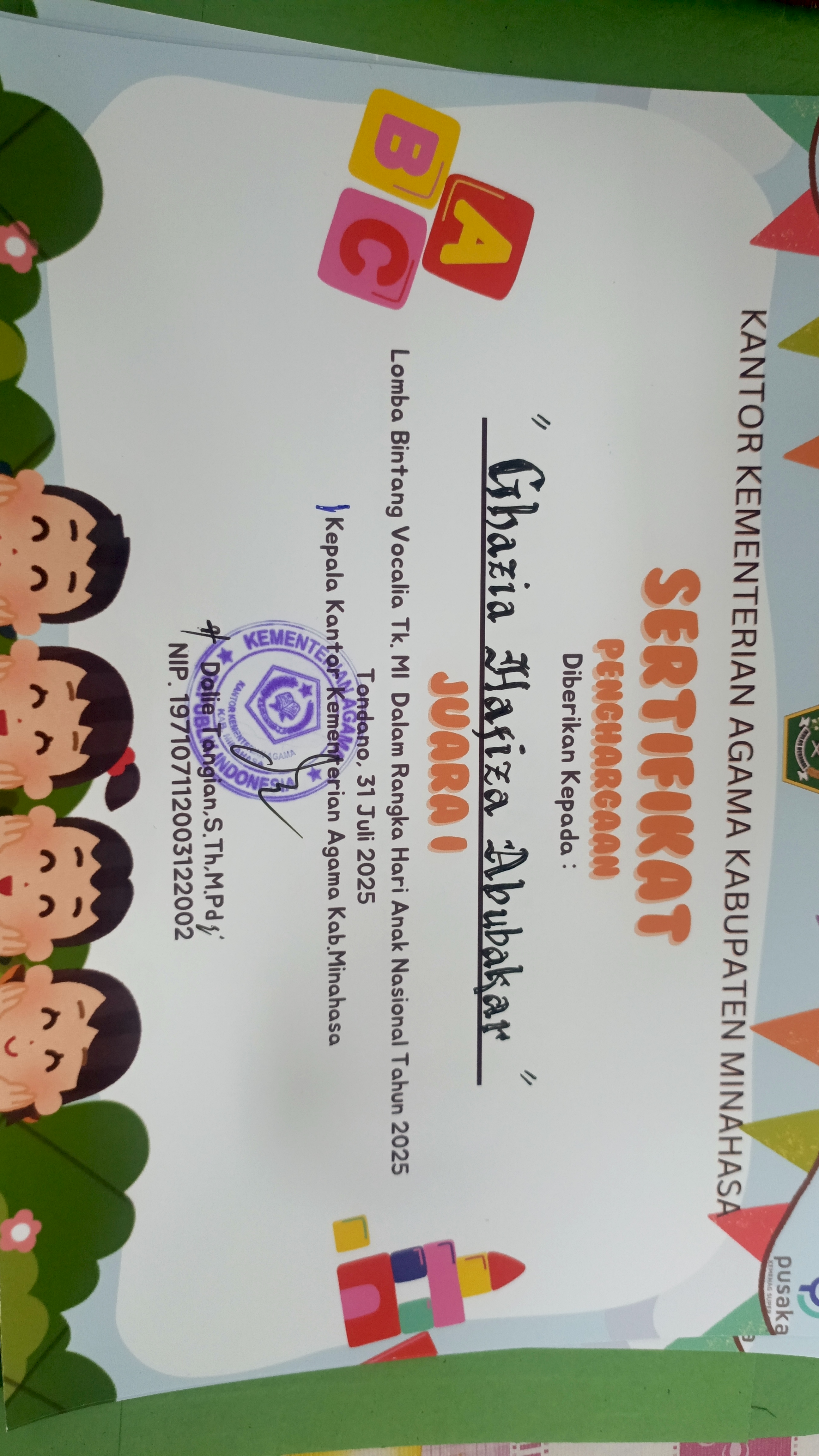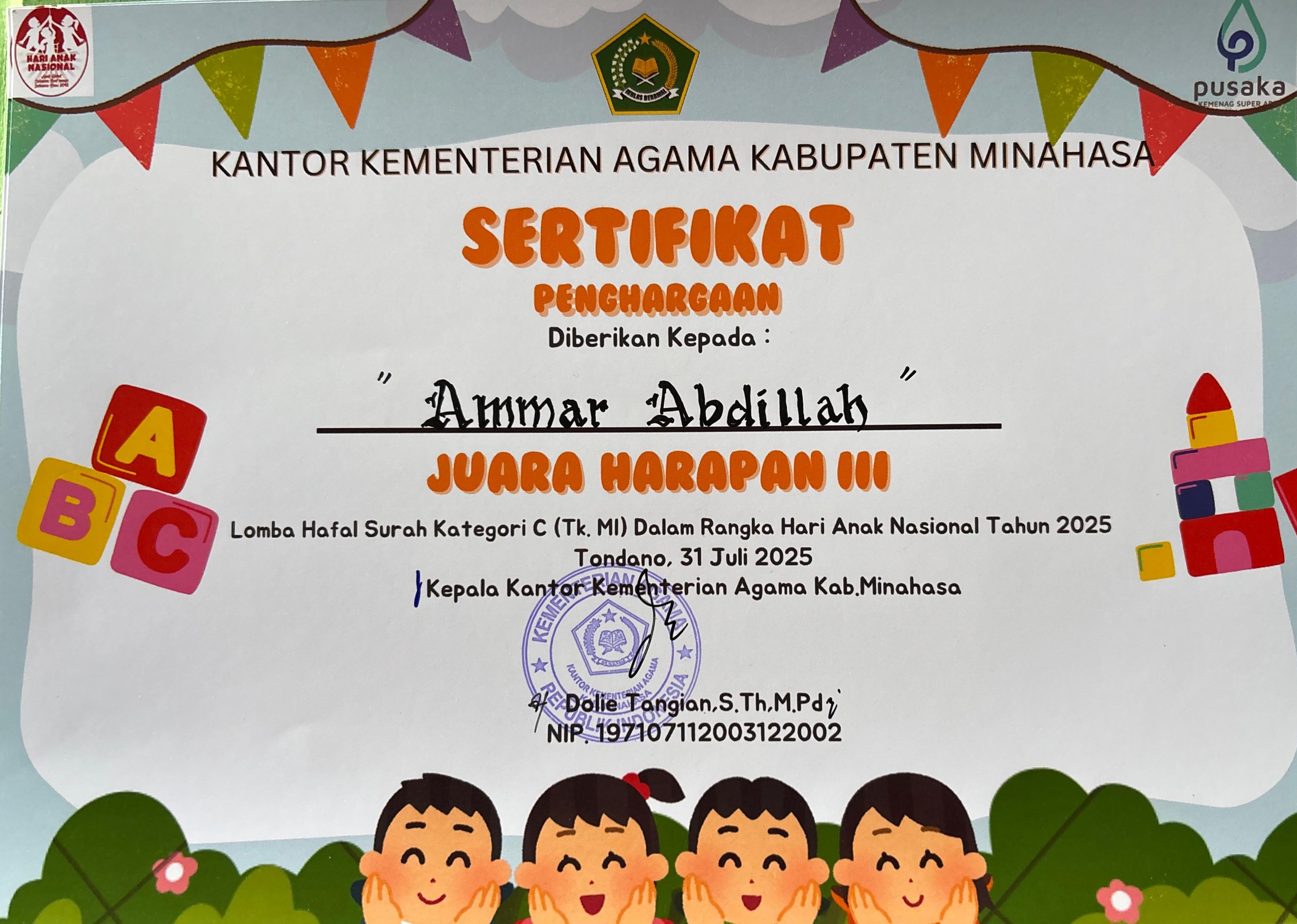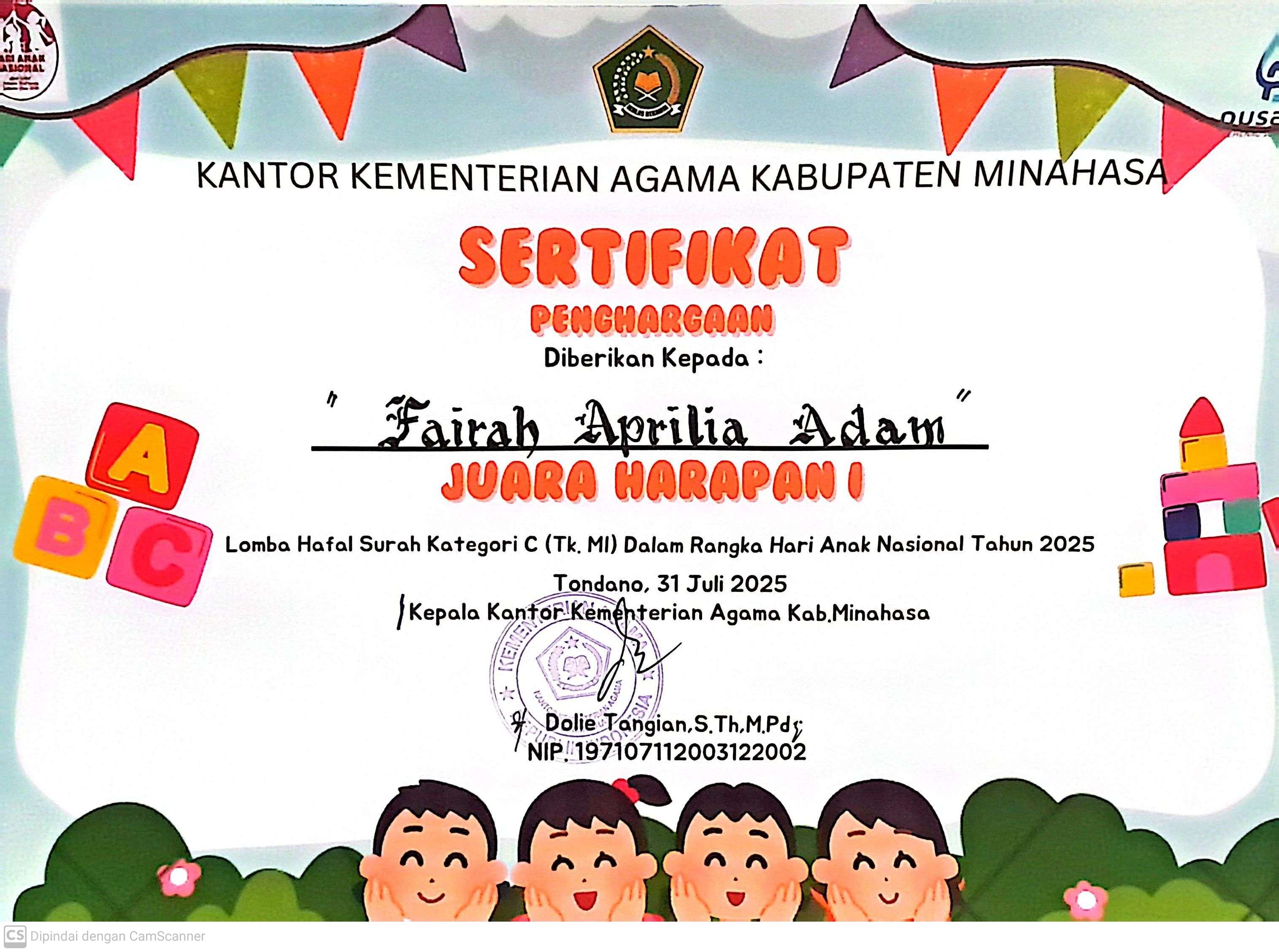 Juara Harapan I tingkat Kab/Kota |