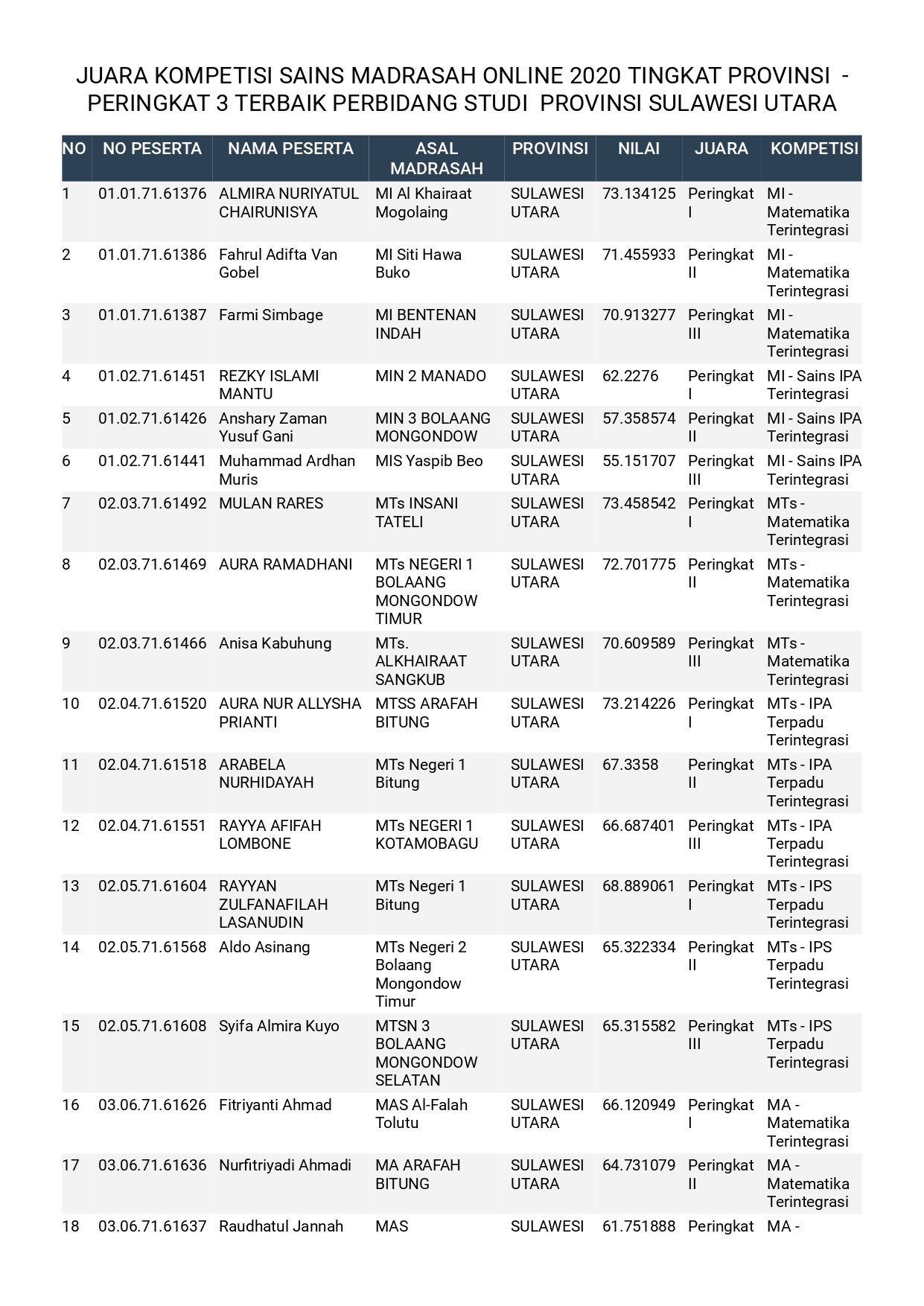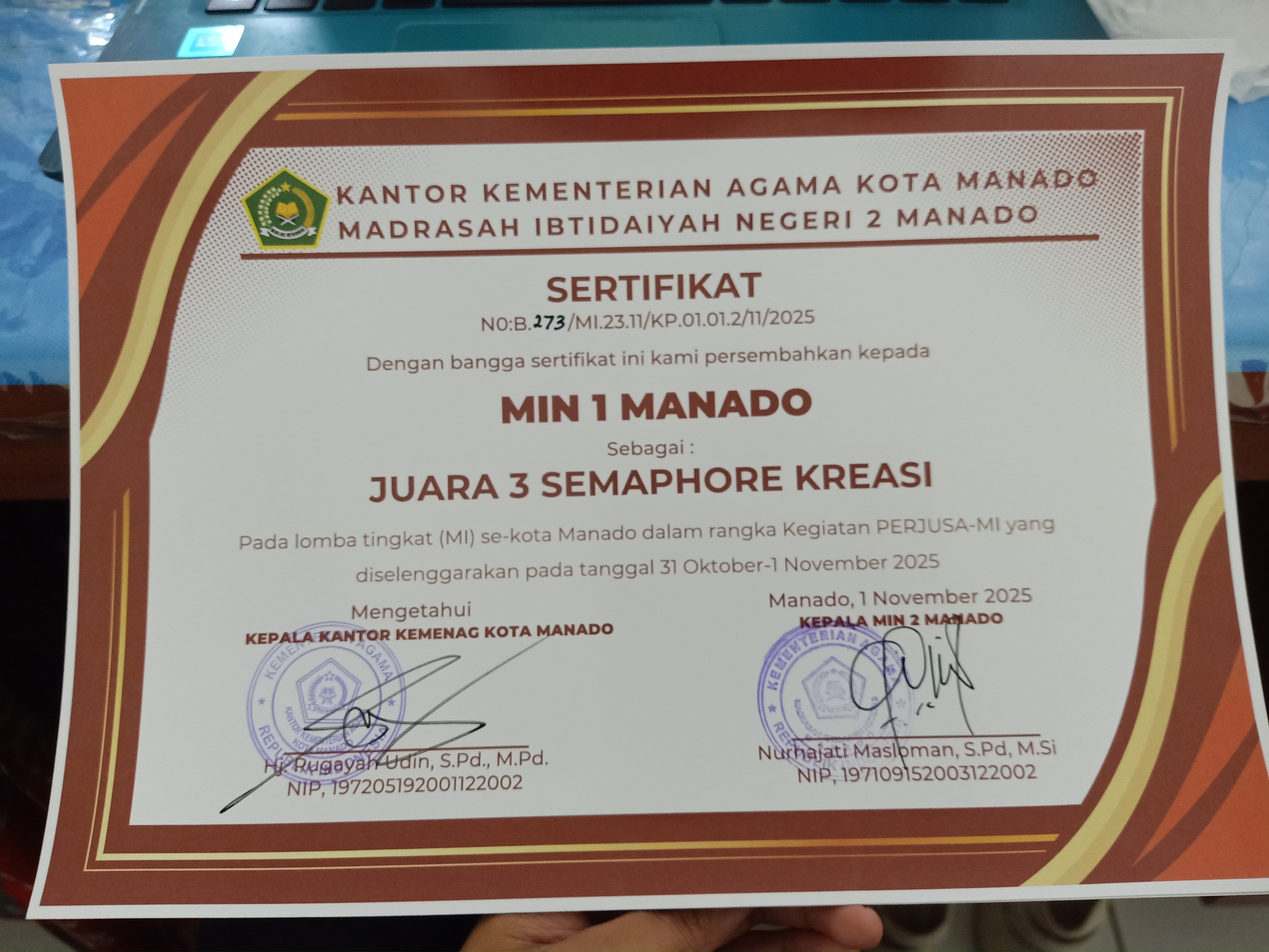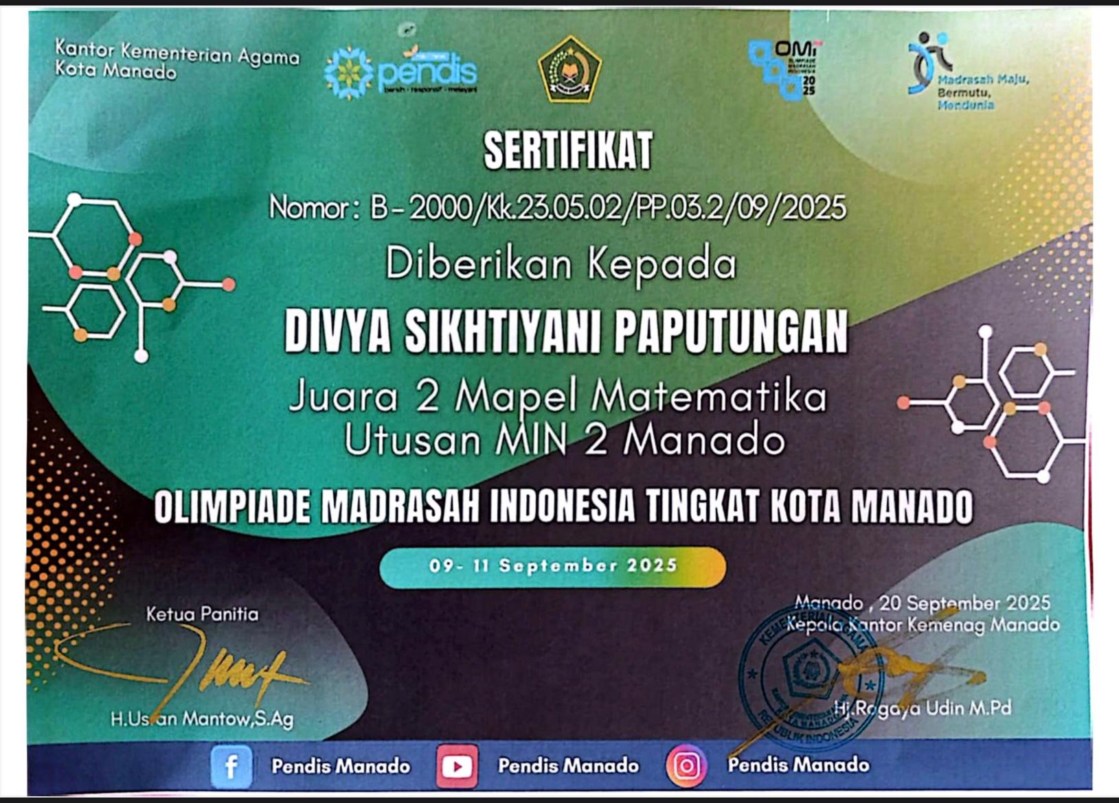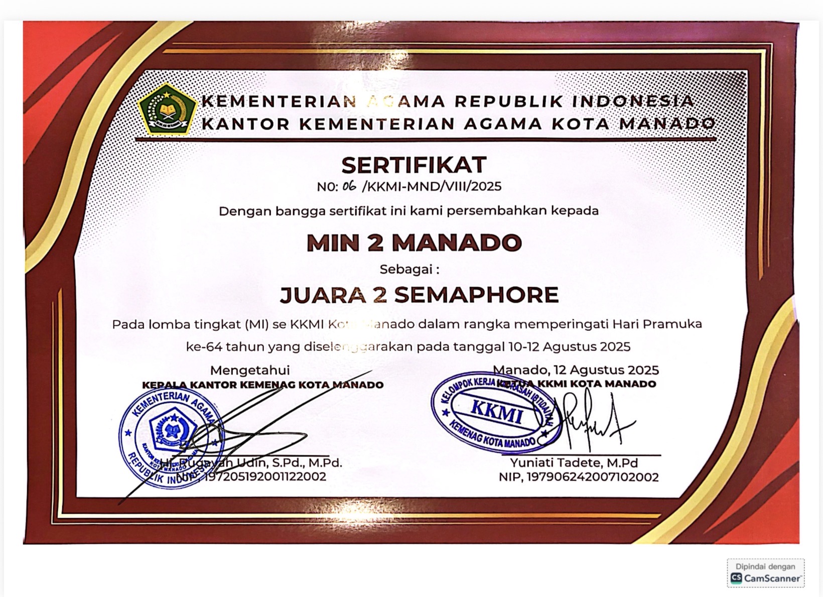 Kemenag Kota Manado tgl. 2020 di MAN Model Manado |