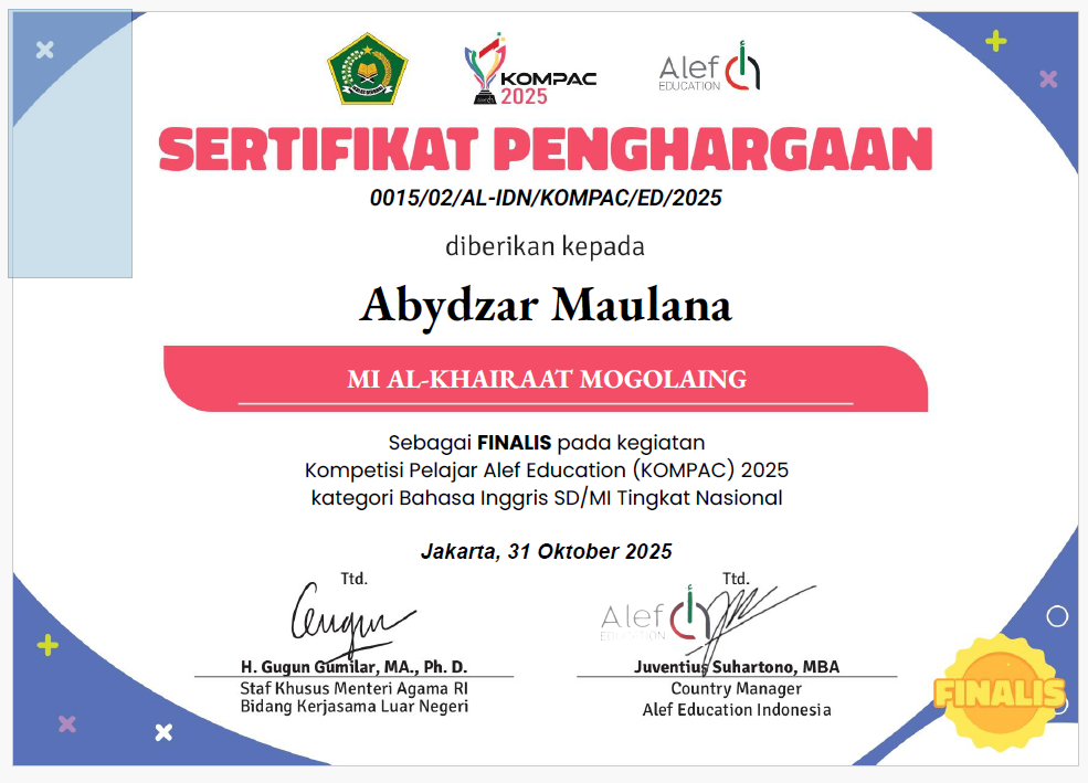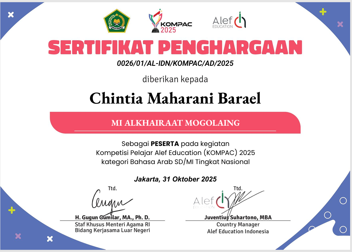 Siswa an. Alif Mohamad Kelas 4 |