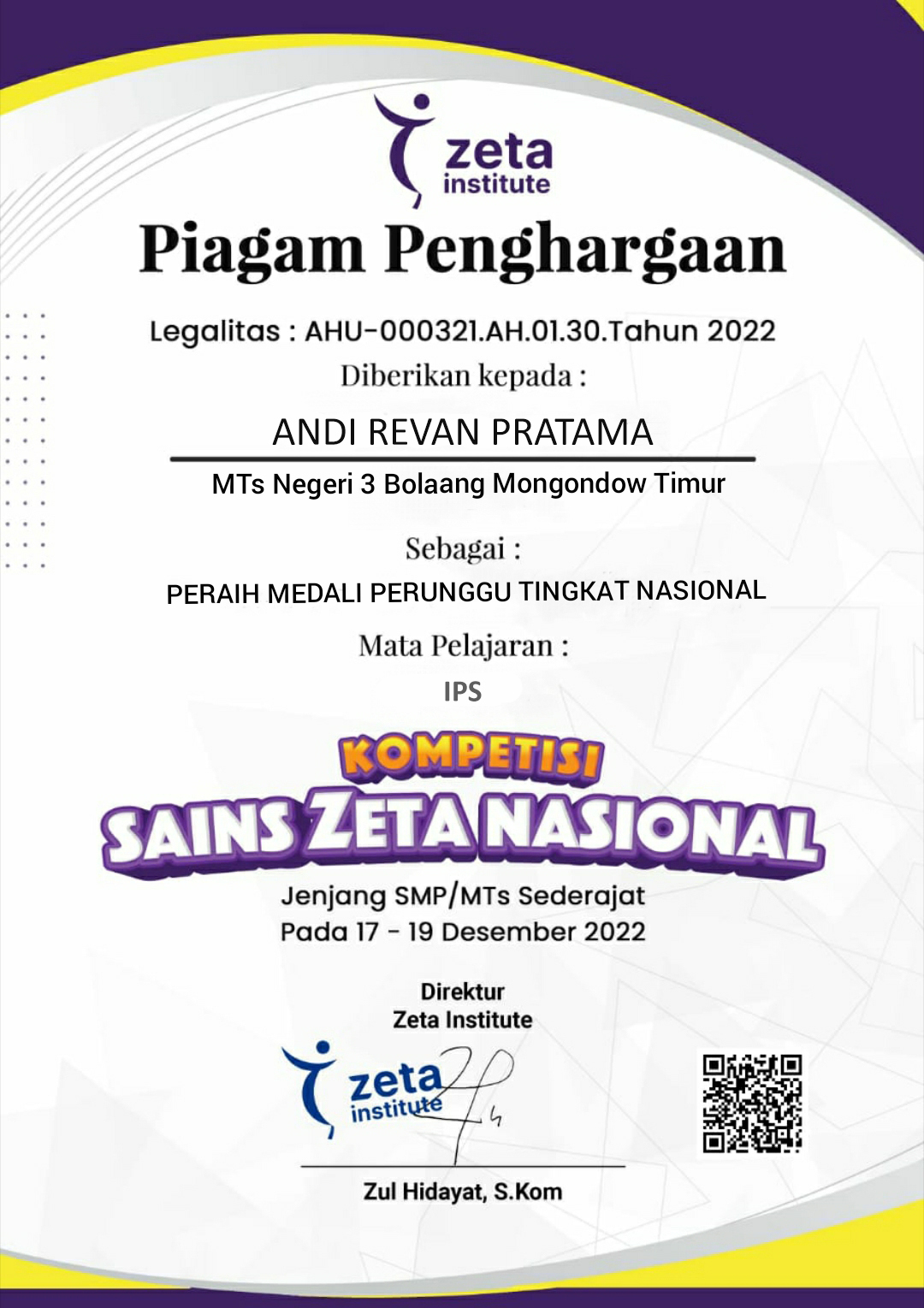 Siswa an. Zhafran Athafariz Lawendatu |