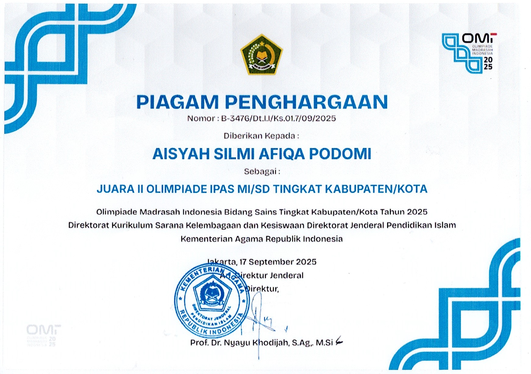 Siswa an. Nur Fajriah Kiai |