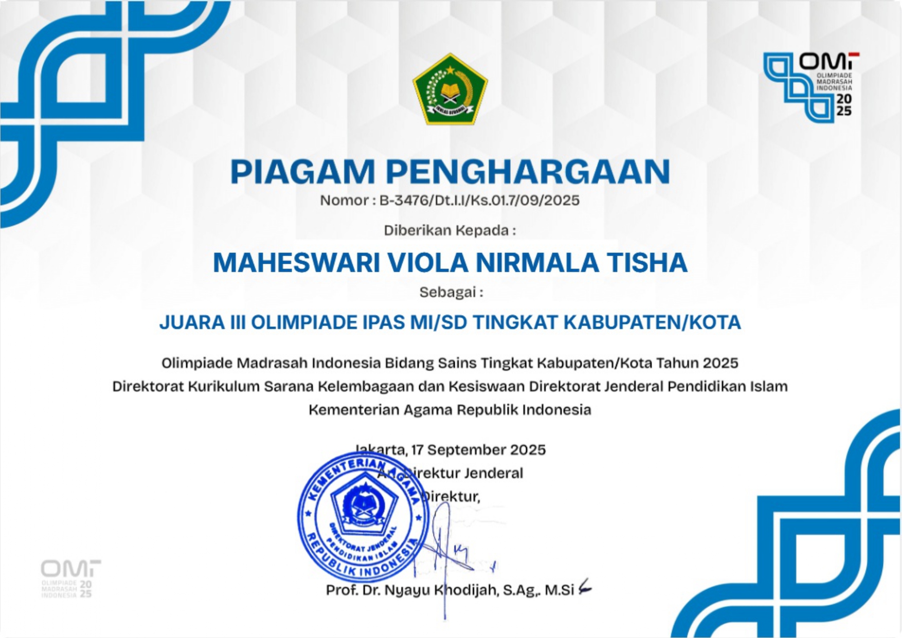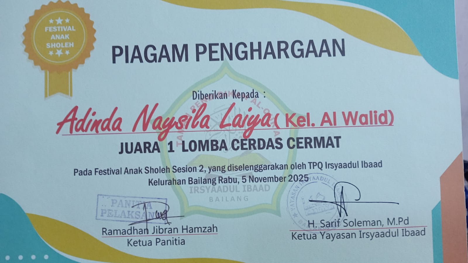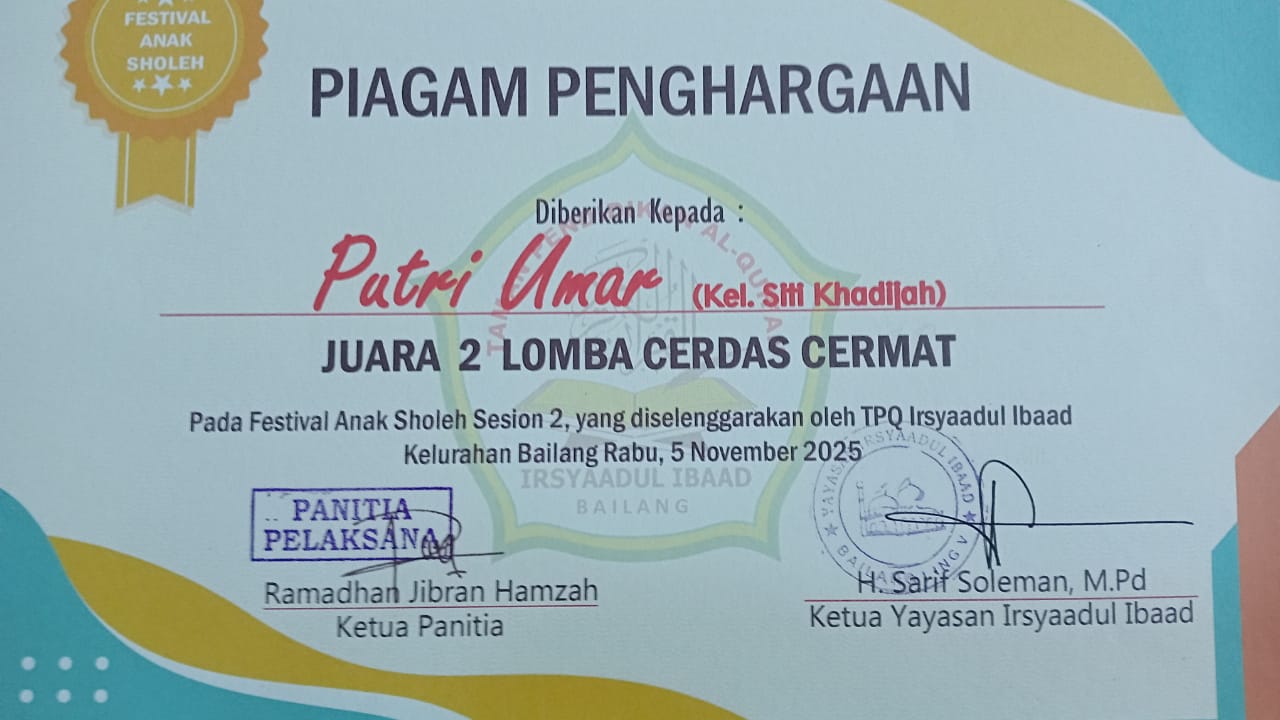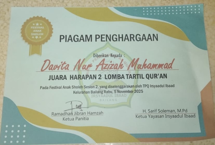 Siswa an. Chesya Faizah - Kelas 5 |