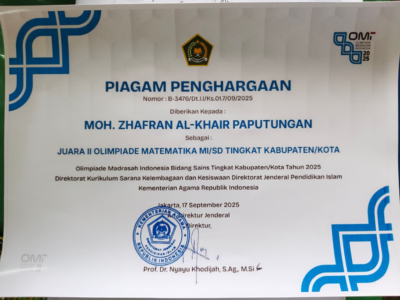 Siswa an. Fikri Lajuru - Kelas 5 |