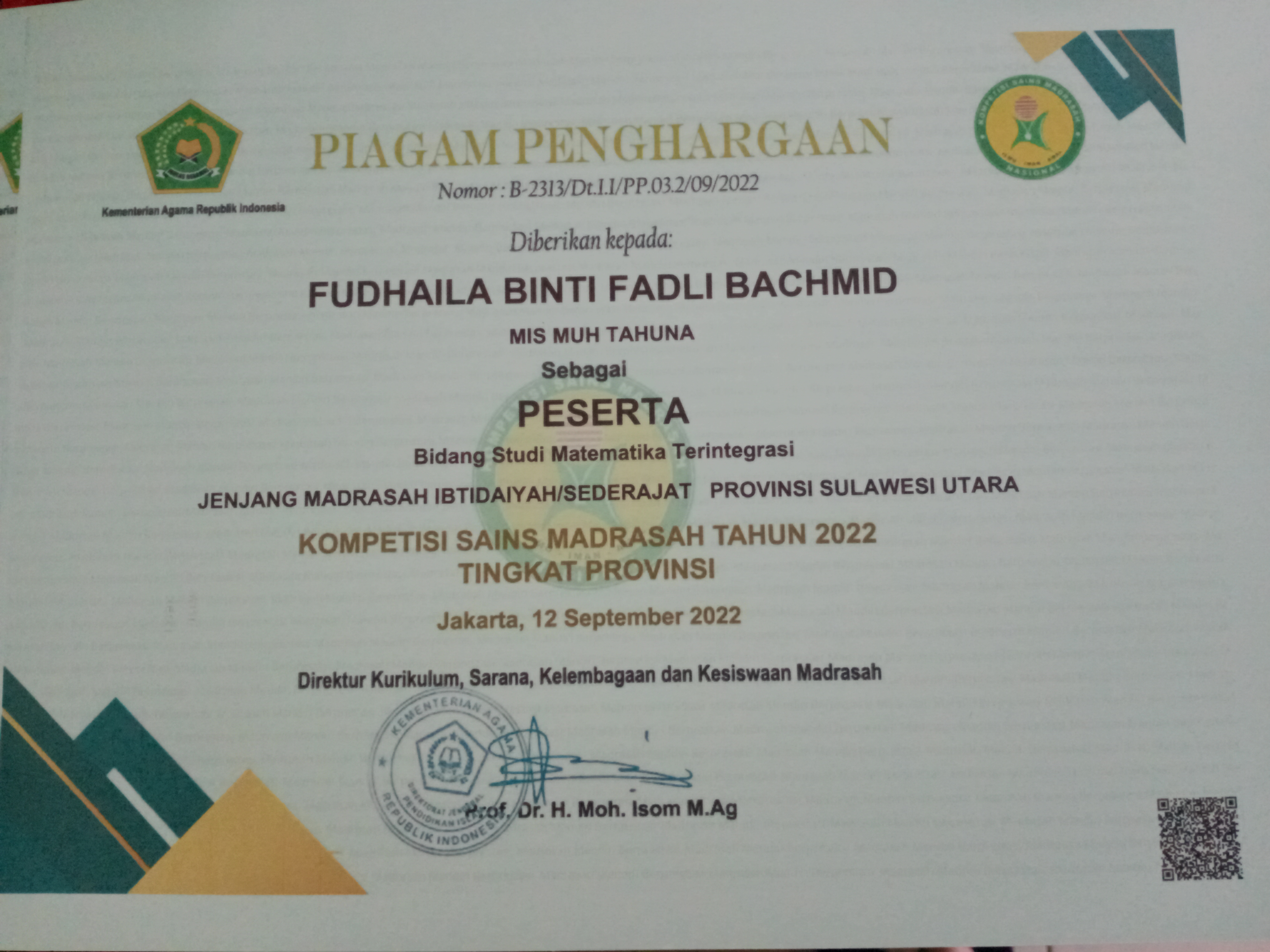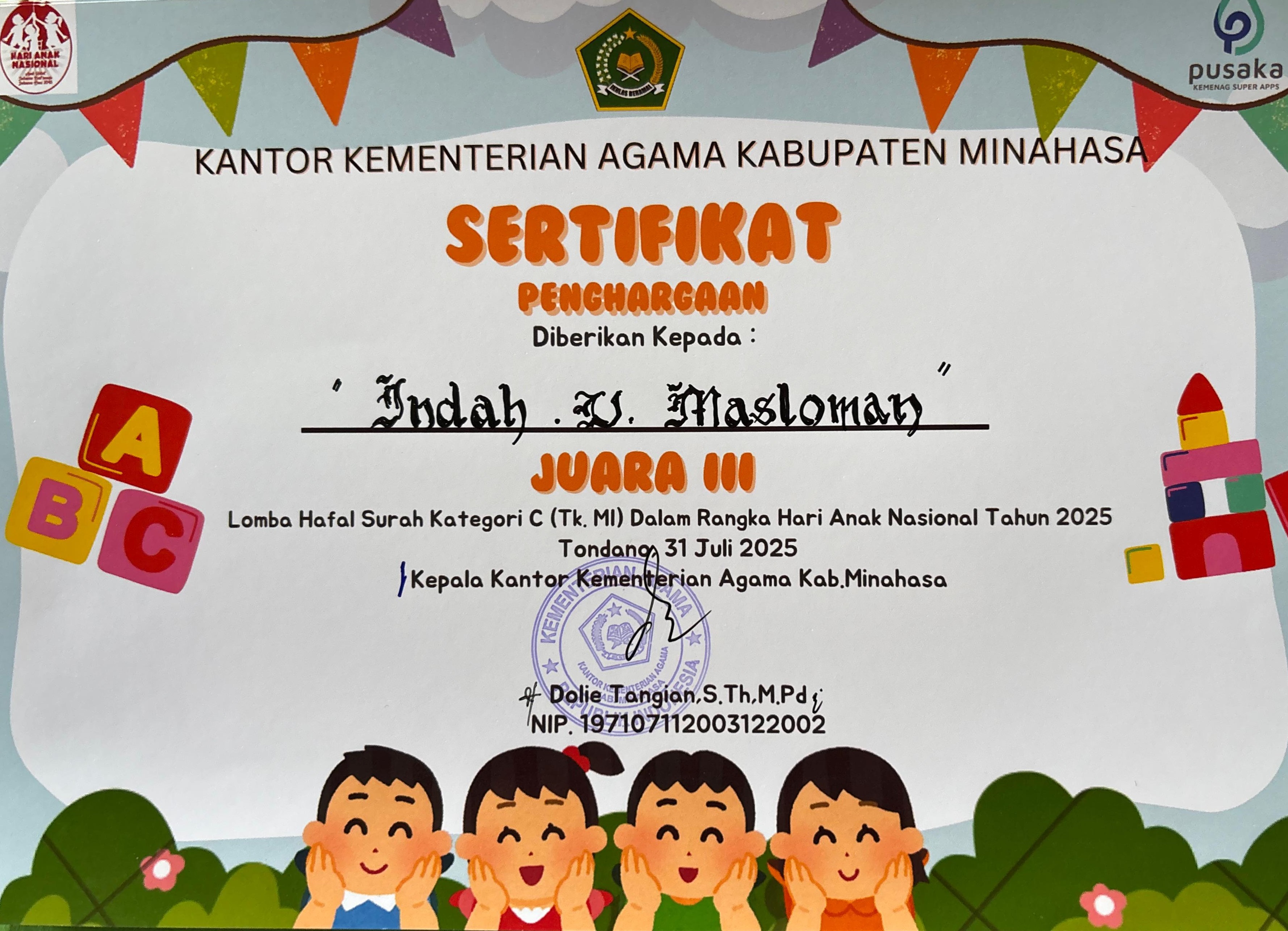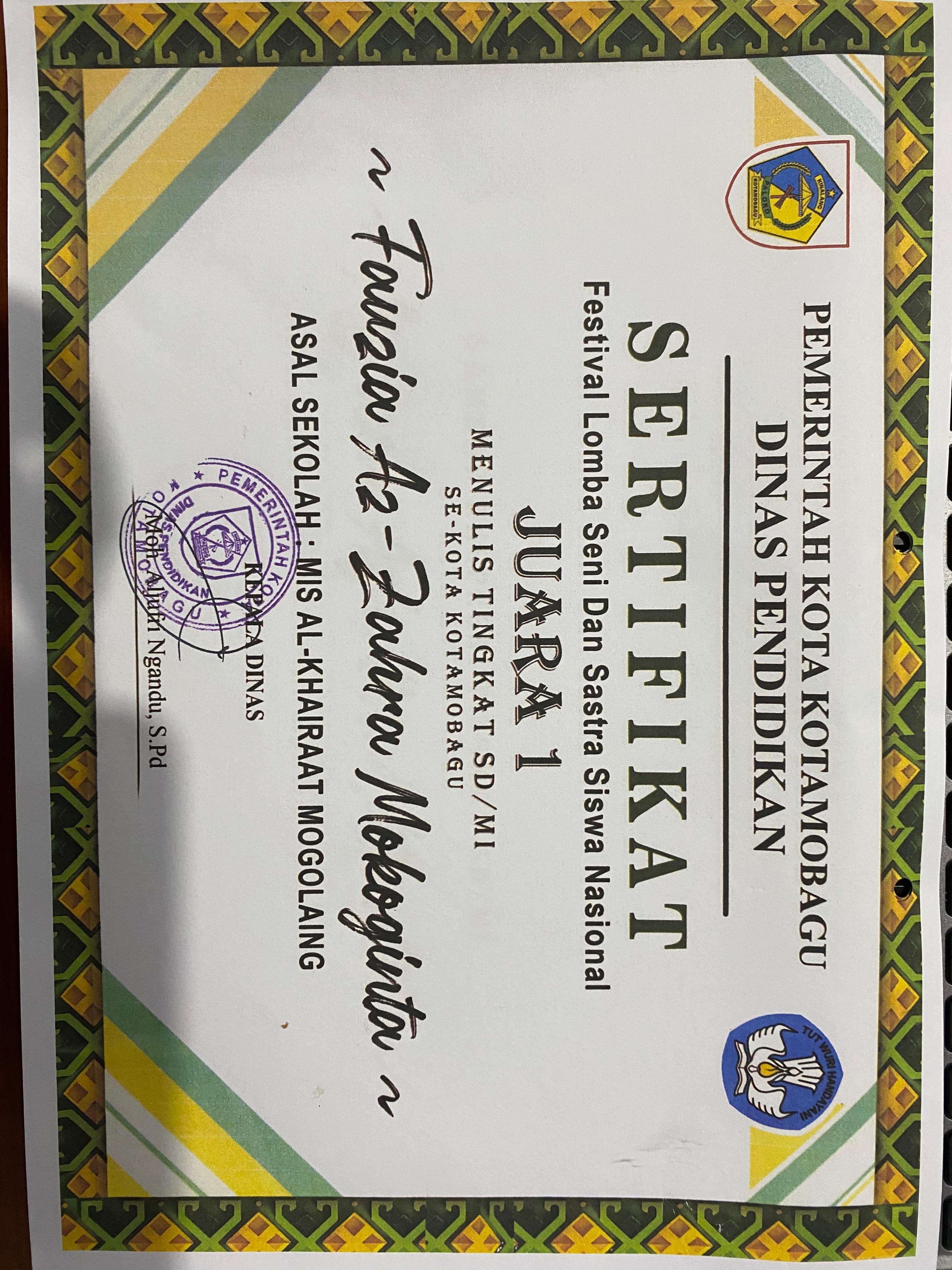 Siswa an. Kofifah Inda Mamonto |