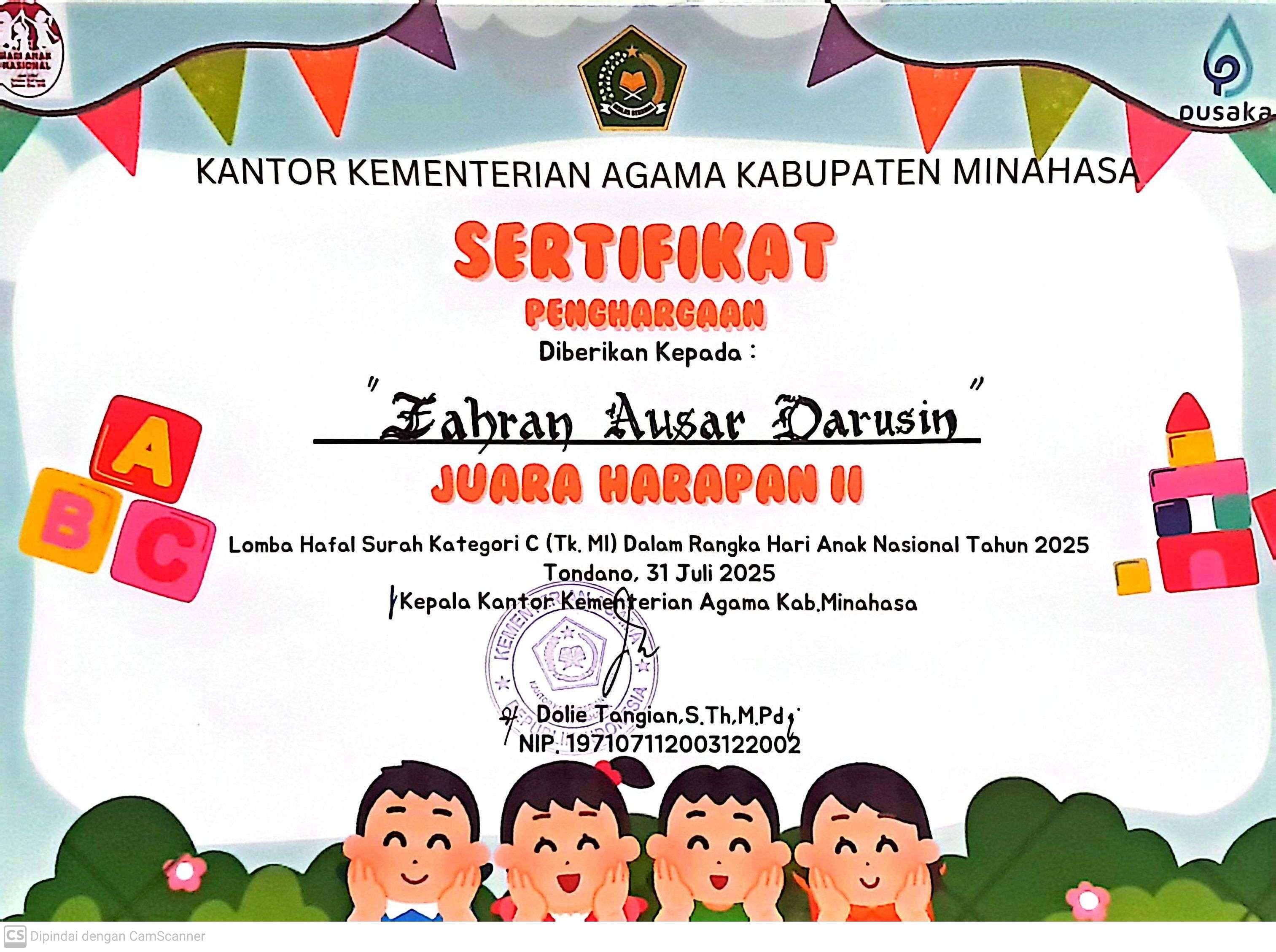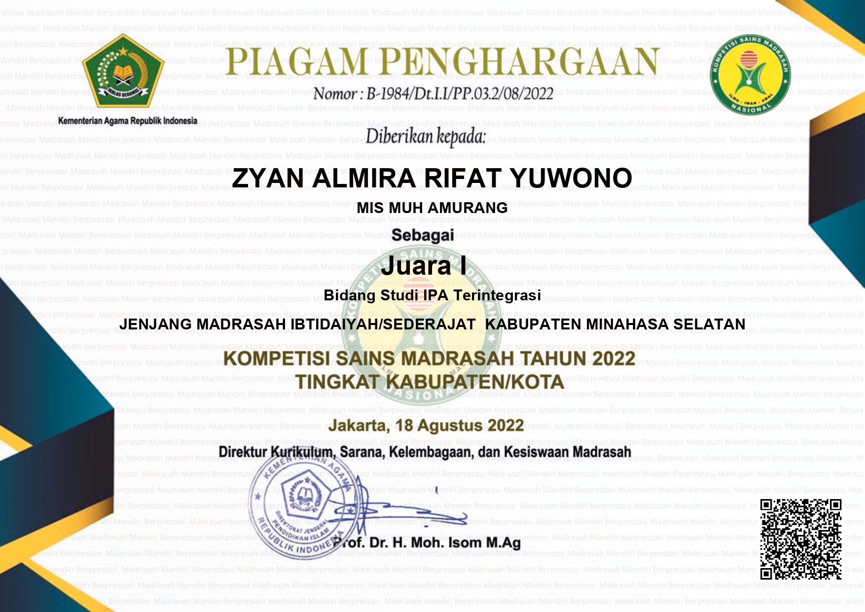 Siswa an. Dirham Anreby Sutrisno |