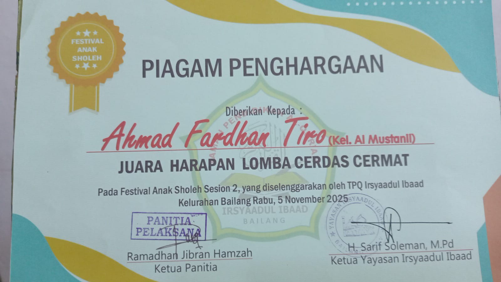 Siswa an. Yusuf A. Fawaz |