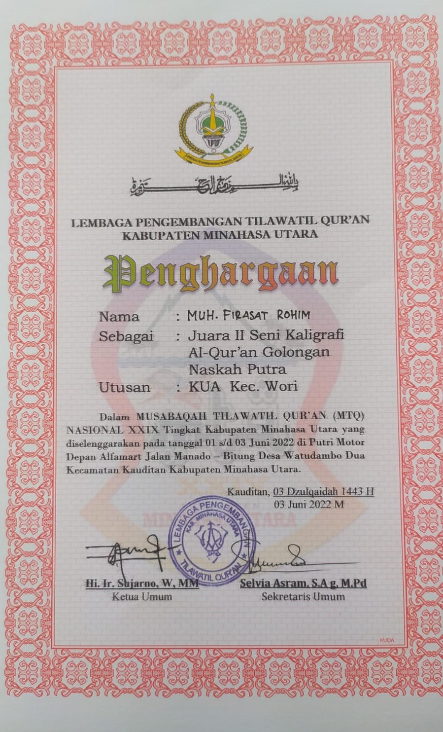 Juara III tingkat Kab/Kota |