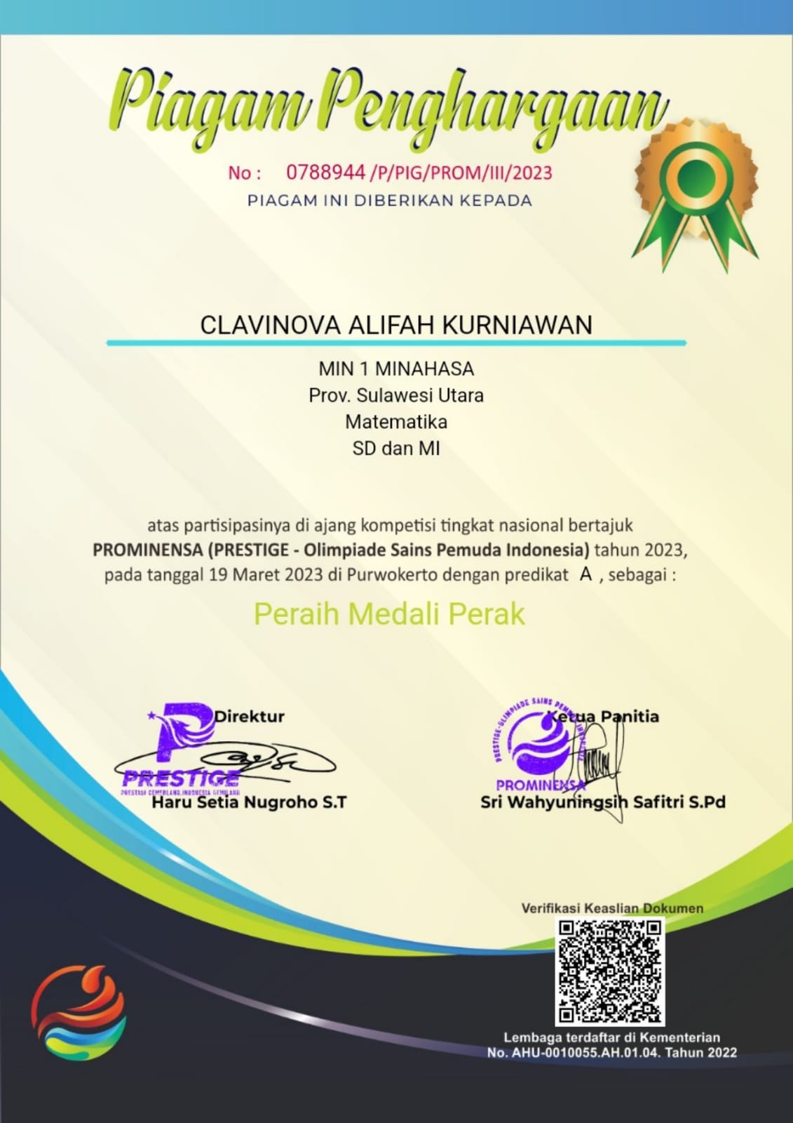 Juara I tingkat Provinsi |