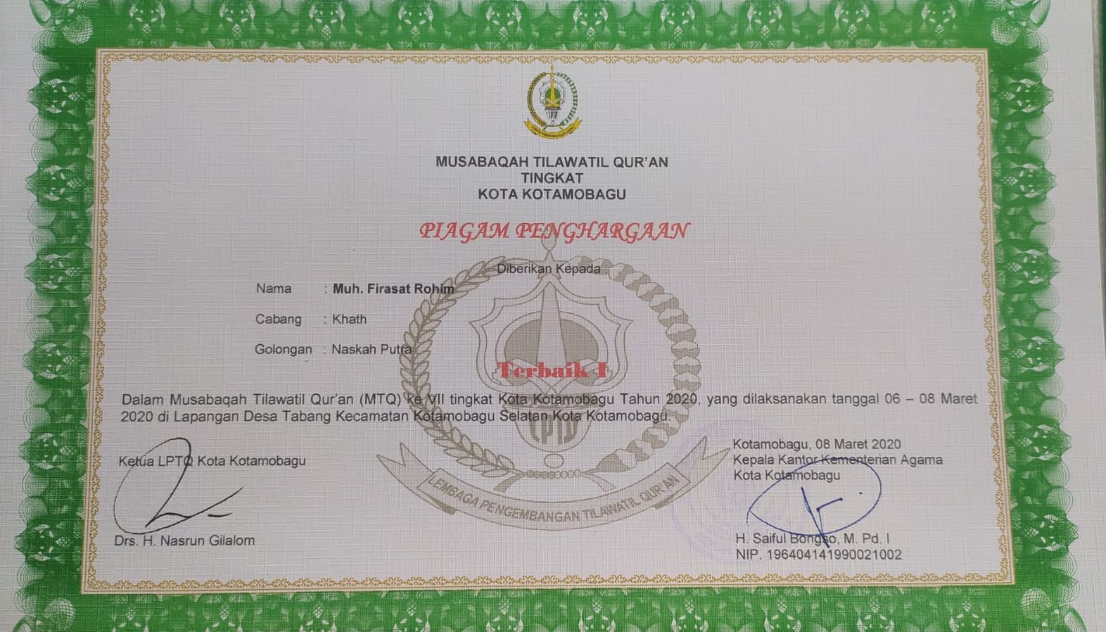 Musabaqah Tilawatil Quran (MTQ) cabang Khath