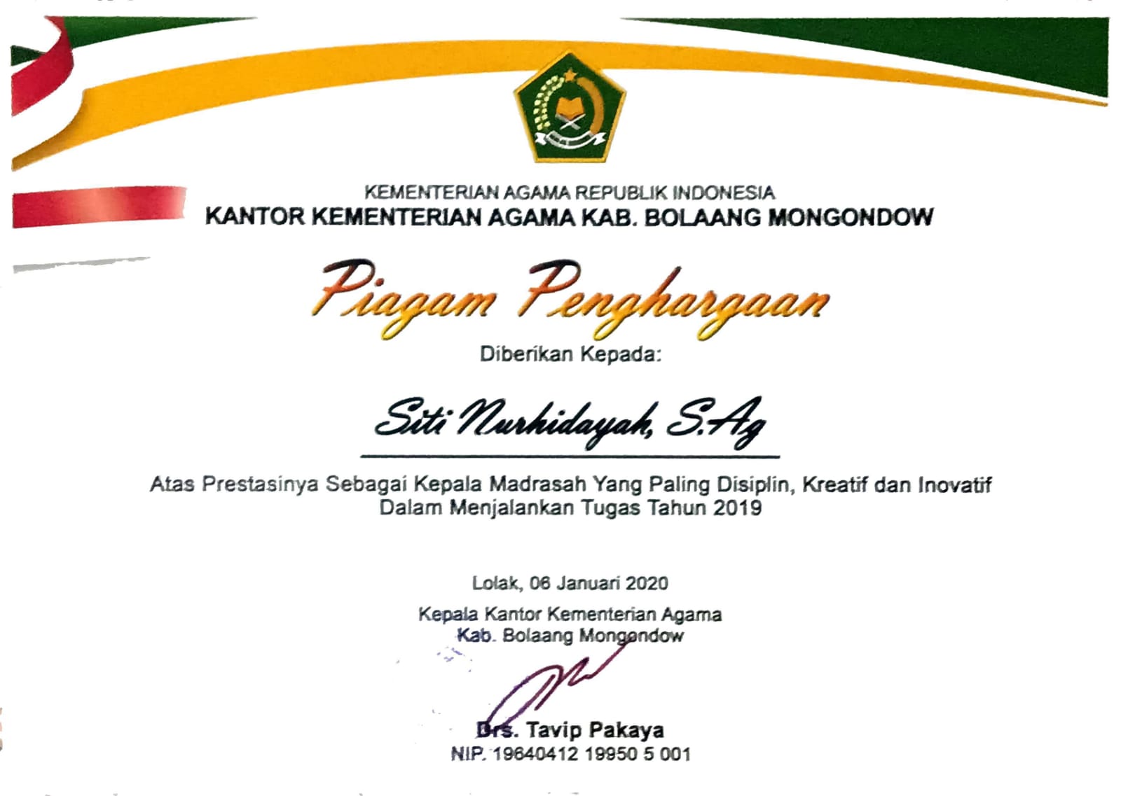 Kementerian Agama Kabupaten Bolaang Mongondow tgl. 06 Januari 2020 di Lolak |