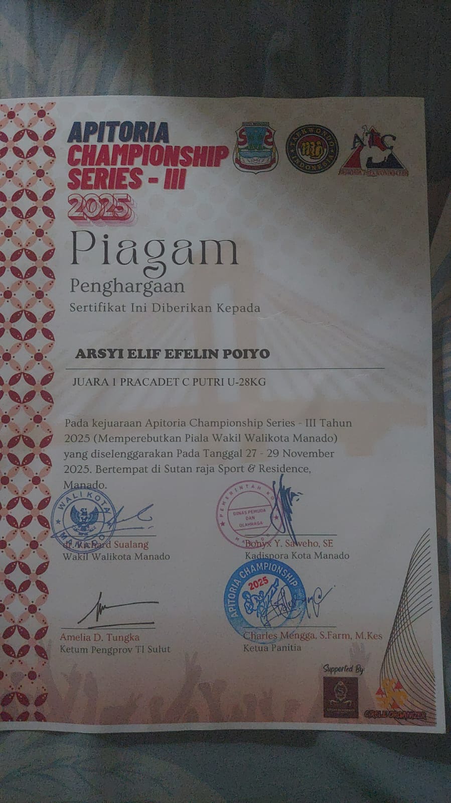 Panitia Pelaksana Winners Championship Open Tournament 2026 tgl. 6 - 8 Februari 2026 di Manado |