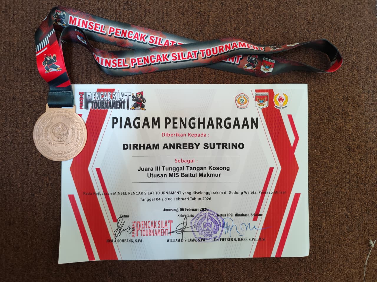 Panitia Pelaksana Pencak Silat Tournament tgl. 04 s.d 06 Februari 2026 di Amurang |