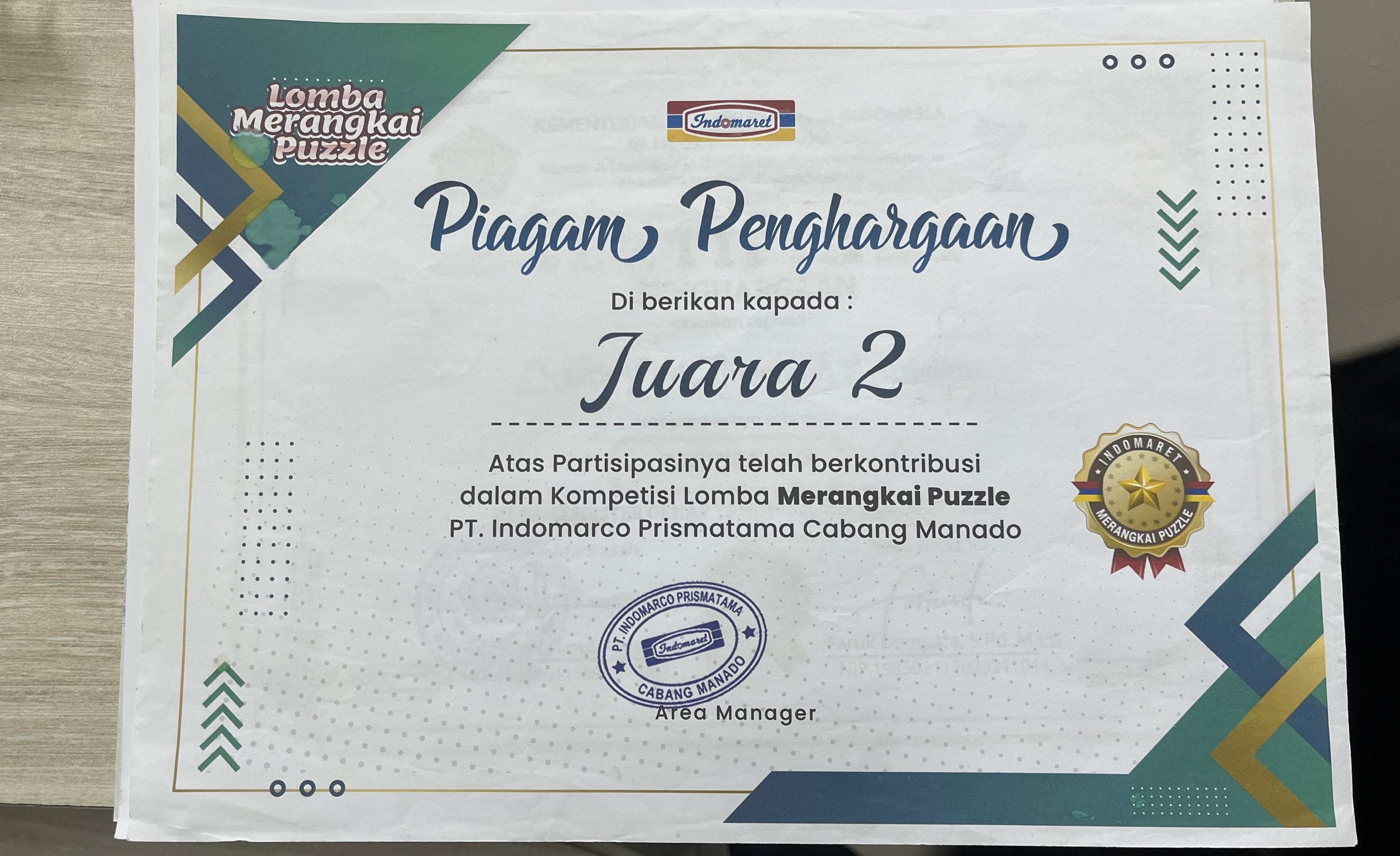 Juara Harapan II tingkat Kab/Kota |