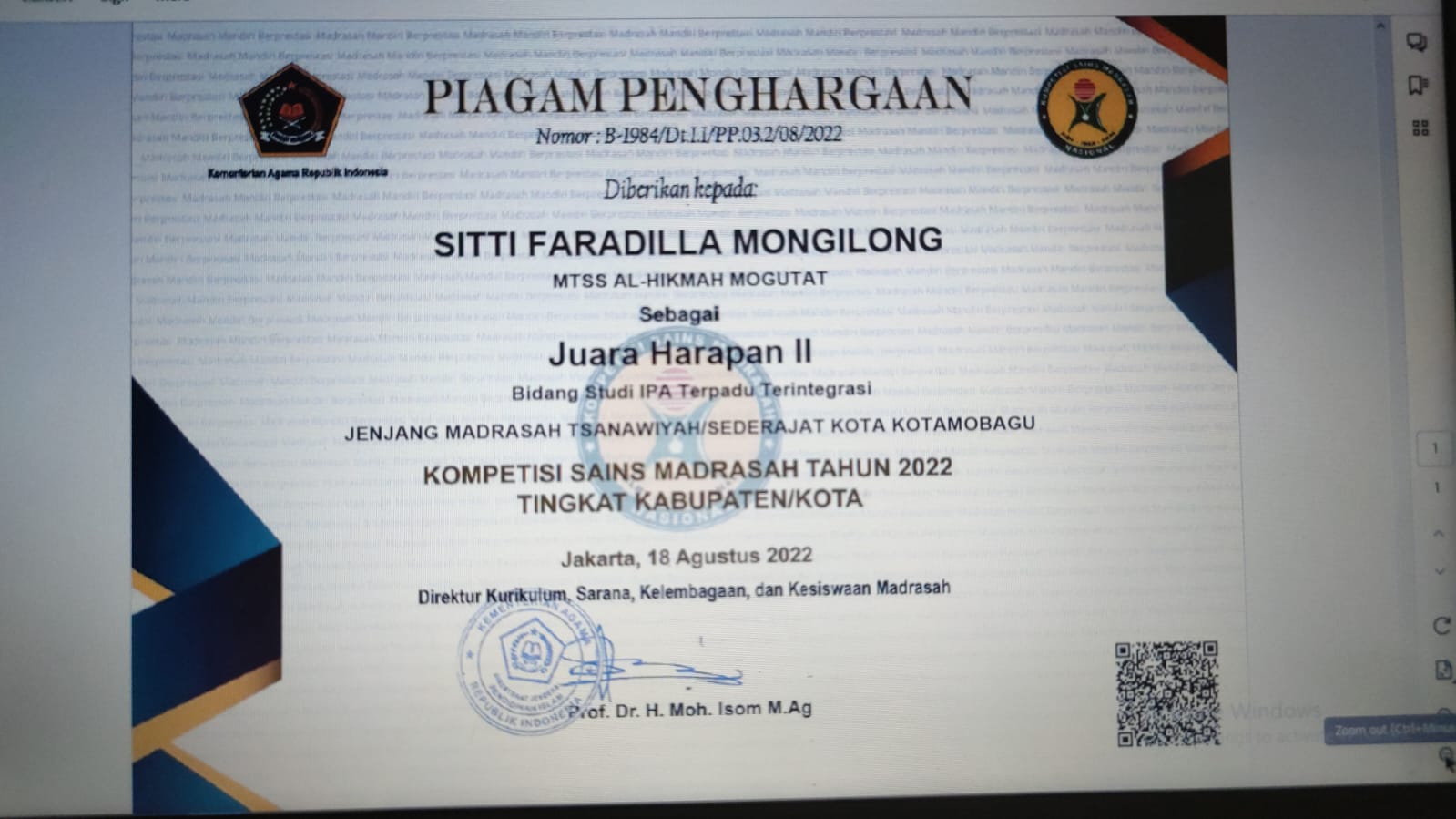 Direktorat Pendidikan Islam Kemenag RI tgl. Oktober 2020 di Lab Komputer MTs negeri 1 Kotamobagu |