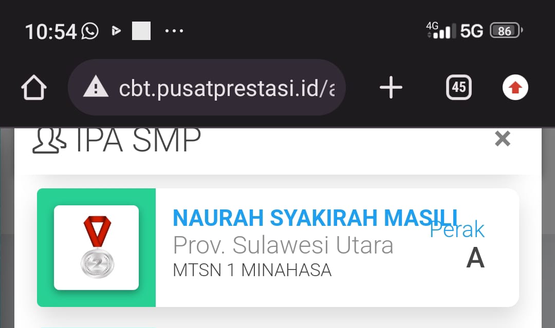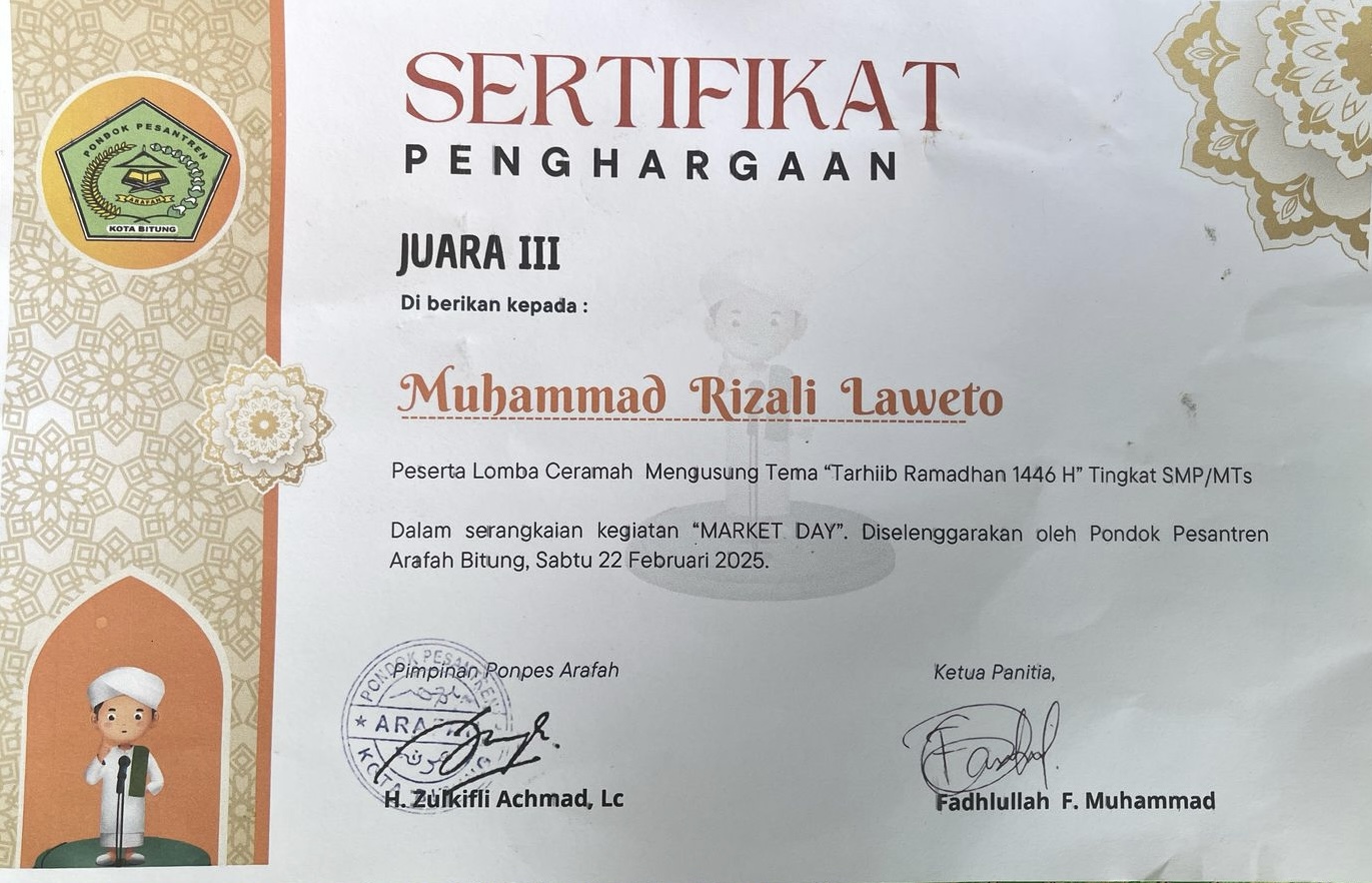 Siswa an. Putri Rahmawati - Kls. 8 |