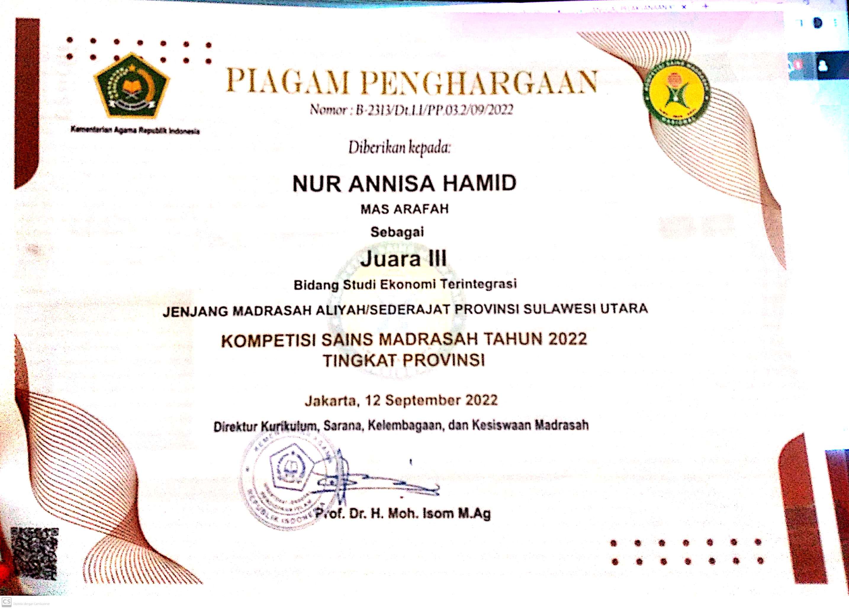 Kementrian Agama Sulawesi Utara tgl. 17-19 September 2021 di MA ARAFAH BITUNG (VIRTUAL/DARING) |