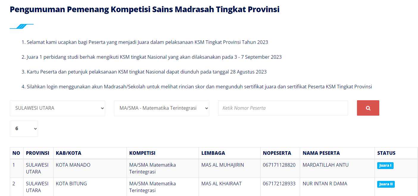 KOMPETISI SAINS MADRASAH TINGKAT PROVINSI cabang
